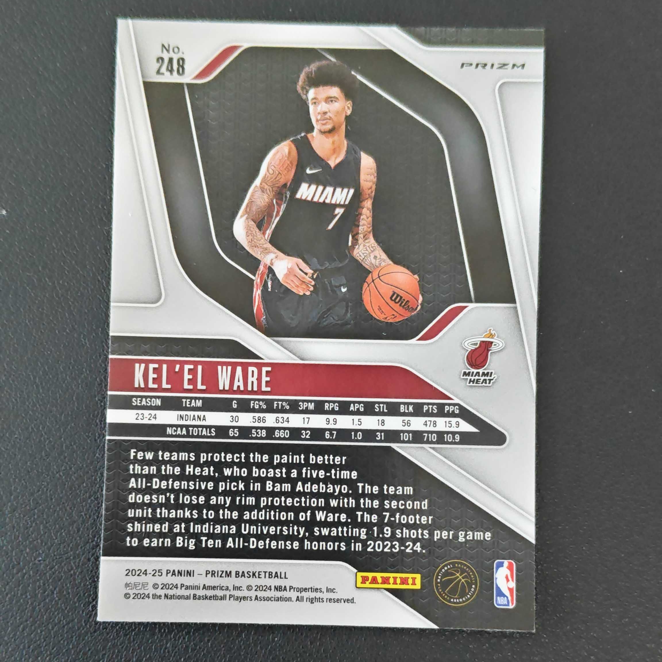 2024-25 Panini Prizm Kel'el Ware RC 凯莱尔 韦尔 热火 新秀 粉碎冰 折射 收藏凑套必备 细节见图