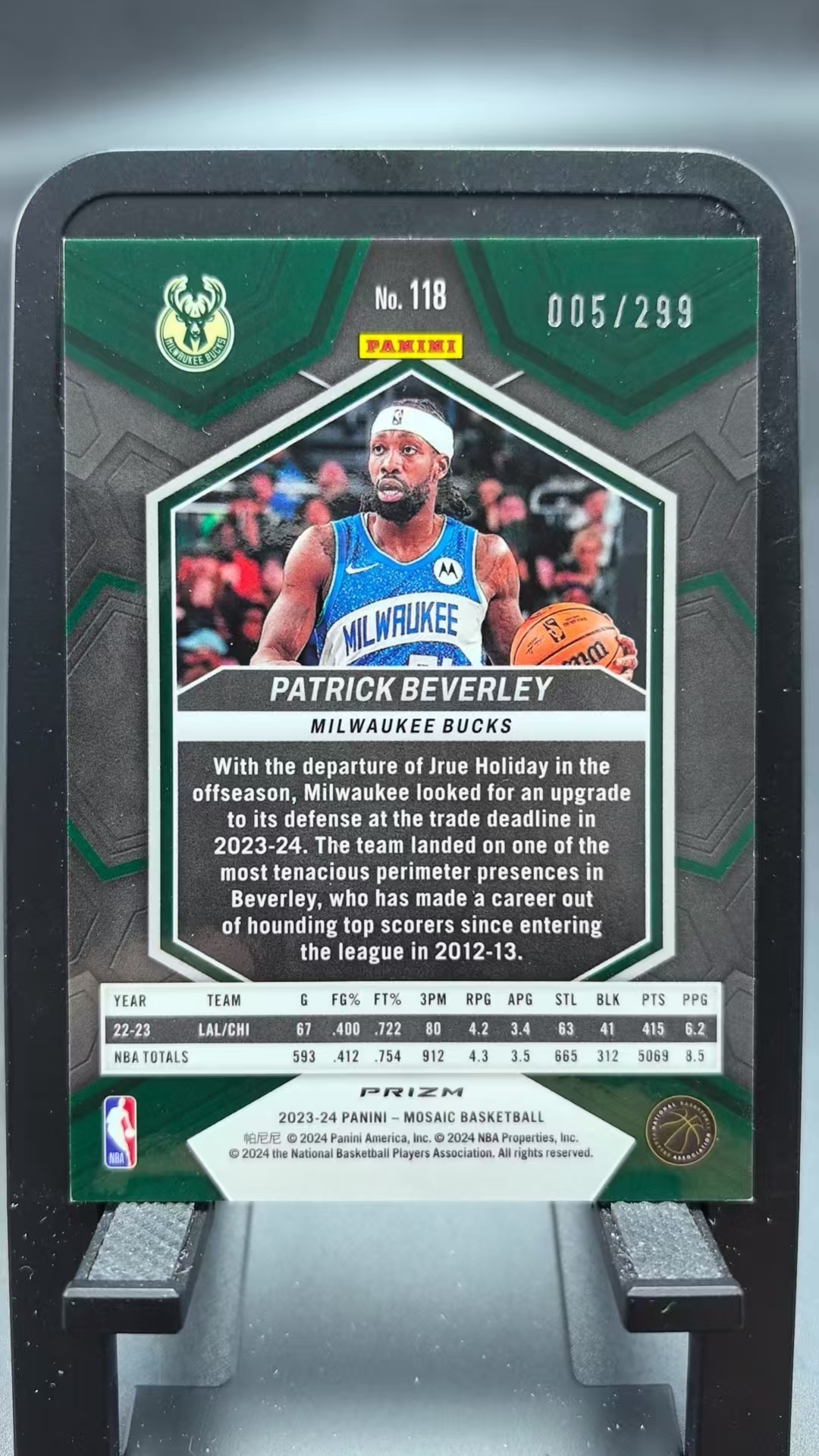 2023-24 Panini Mosaic Patrick Beverley 【EC】  马赛克 雄鹿 帕特里克 贝弗利 折射 红变形虫折 5/299编 呆萌53