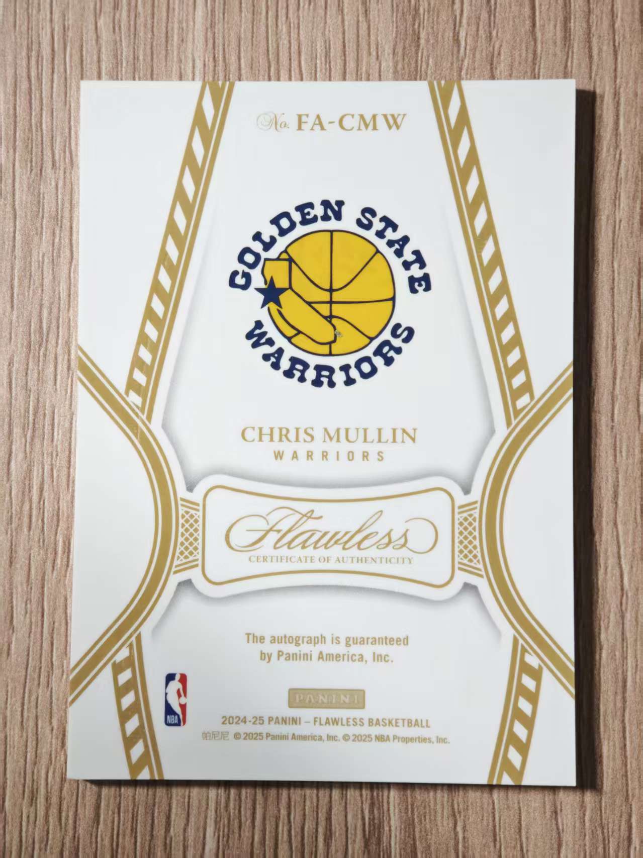 2024-25 Panini Flawless Chris Mullin 手提 勇士 克里斯 穆林 闪版 签字 卡签 /25编 专收必备