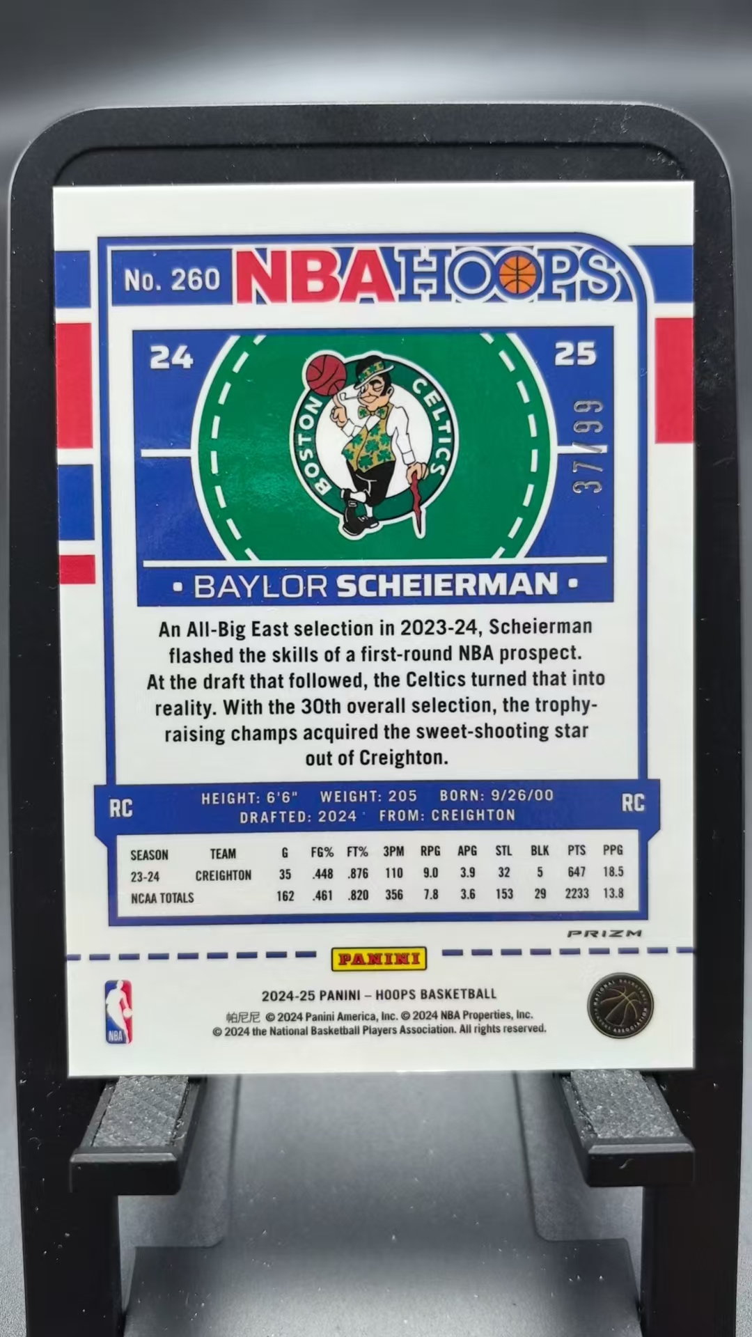 2024-25 Panini Hoops Baylor Scheierman RC 【EC】 凯尔特人 贝勒 沙伊尔曼 新秀 37/99编 折射 波纹折 呆萌53