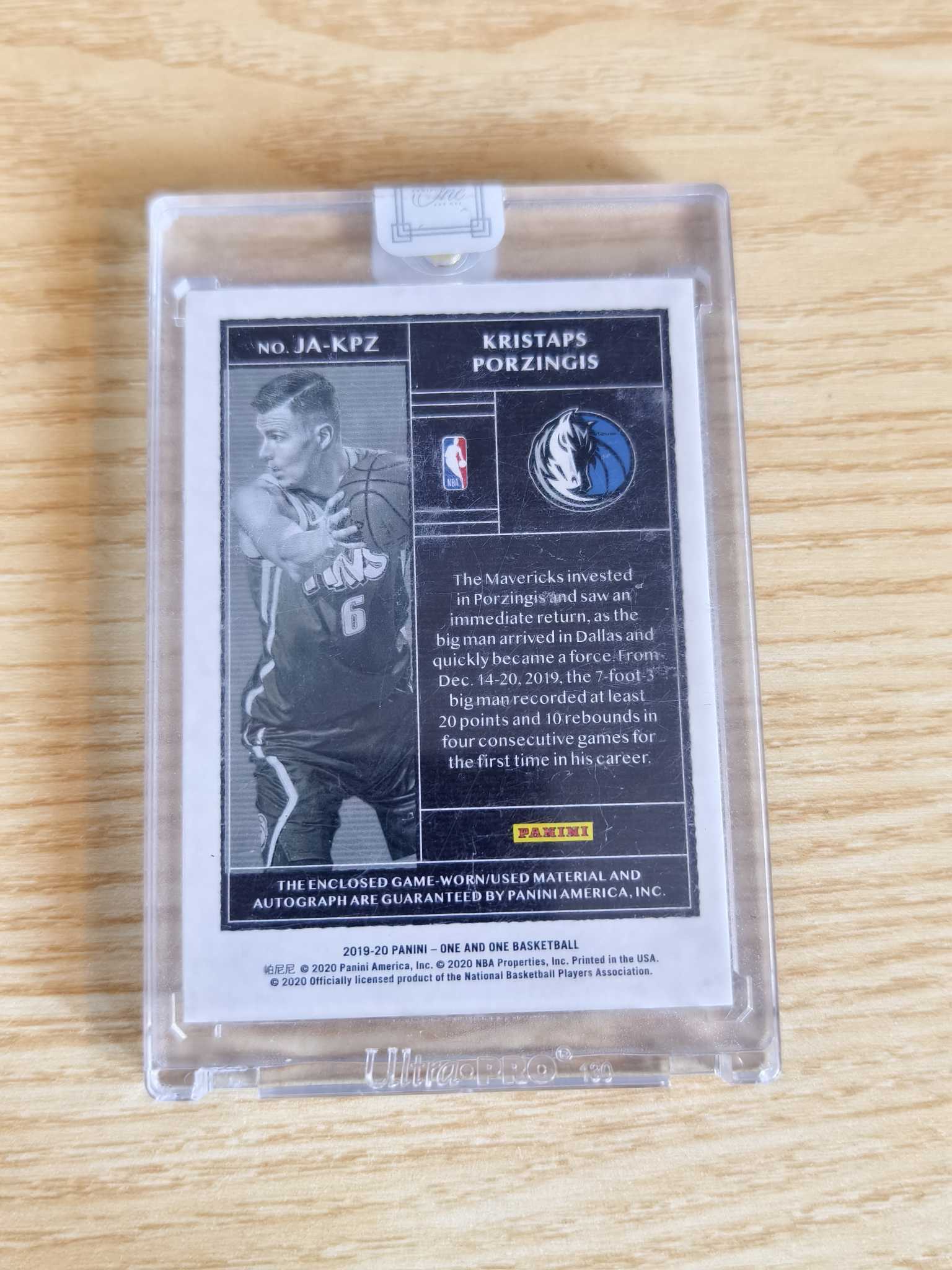 2019-20 Panini One and One Kristaps Porzingis 波尔津吉斯 独行侠 独角兽 OAO 99编 JA 签字卡签 收藏必备