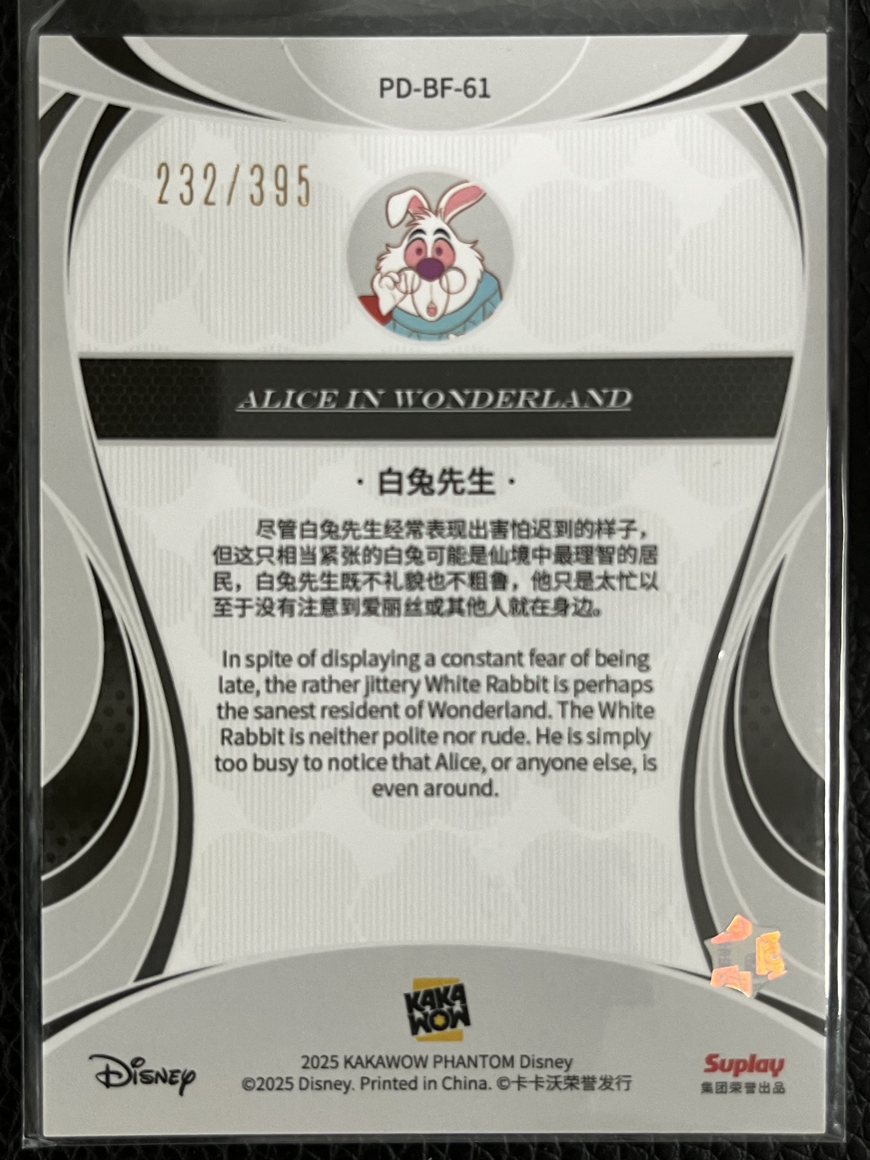 卡卡沃 2025 KAKAWOW PHANTOM 迪士尼系列收藏卡 基础卡-四叶草折 欧Q(21B)232/395编 卡号61 白兔先生 White Rabbit