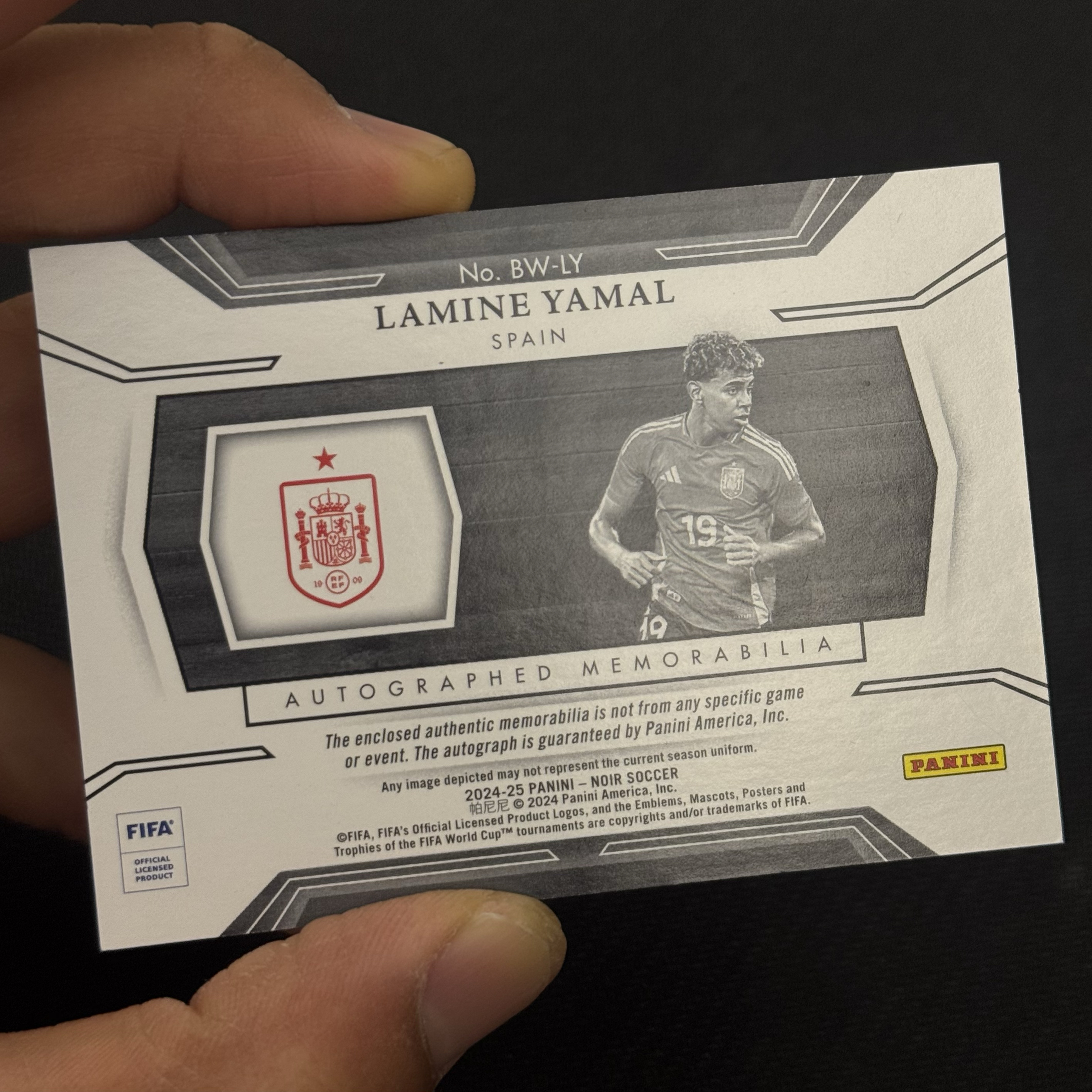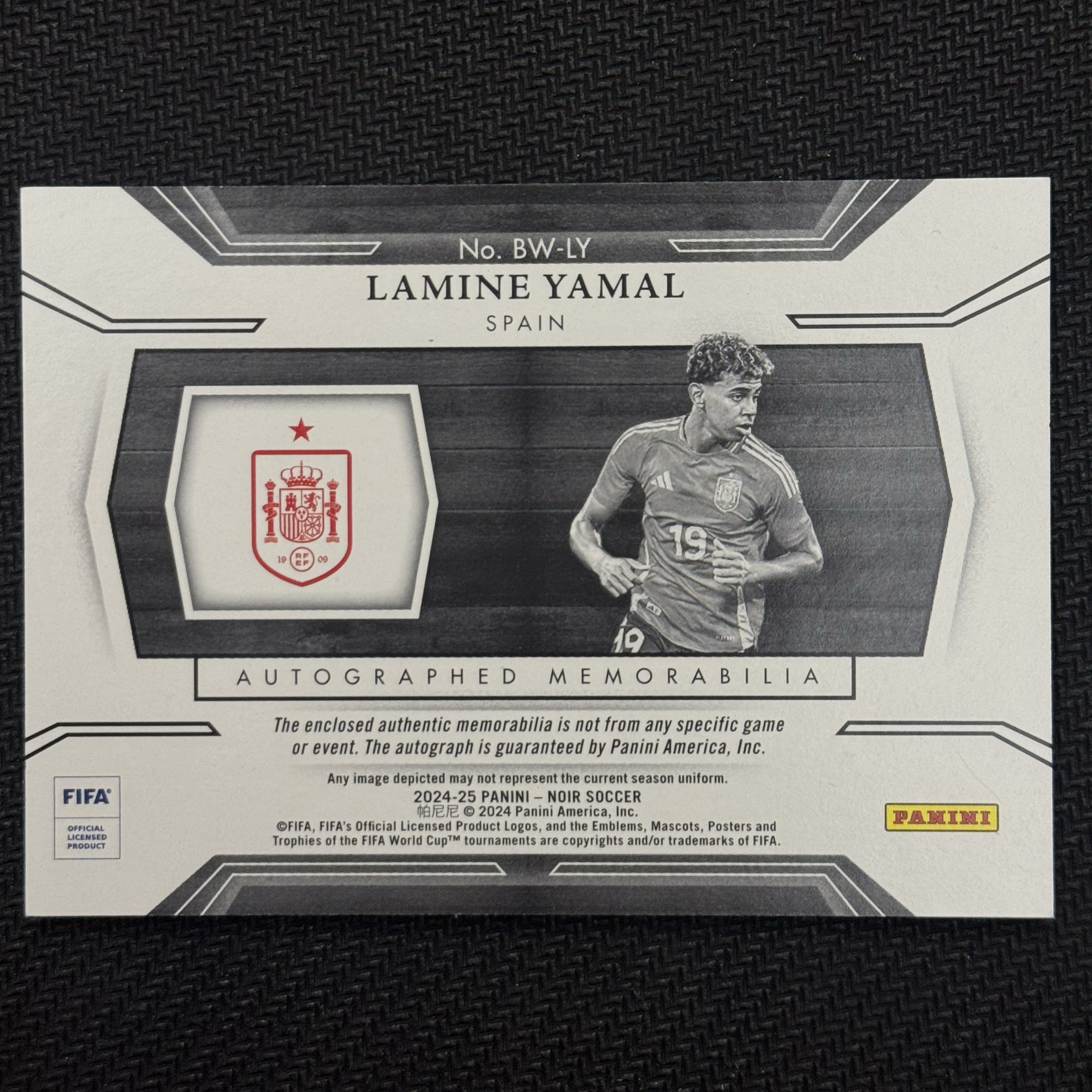 2024-25 Panini Noir Lamine Yamal 足球 诺尔 拉明 亚马尔 西班牙 新秀次年 89/99编 横版 JA 黑白 签字 贴签 球衣物料 小窗切割 天才少年 卡品如图【广诚】