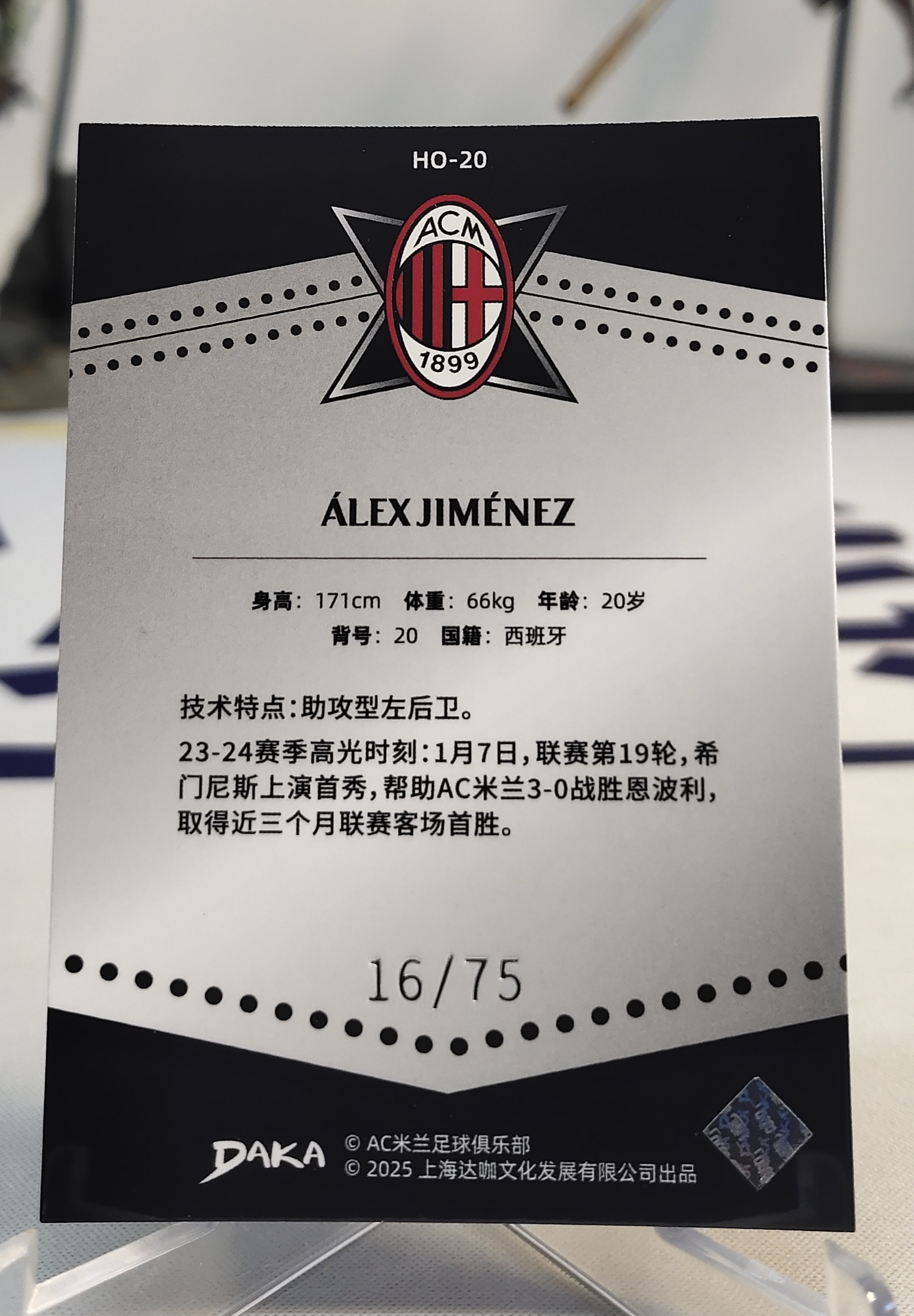 2024-25 DAKA AC米兰队盒 Alex Jimenez 达咖 亚克斯 16/75编 橙折 折射 收藏凑套必备 不累计不到付 钱