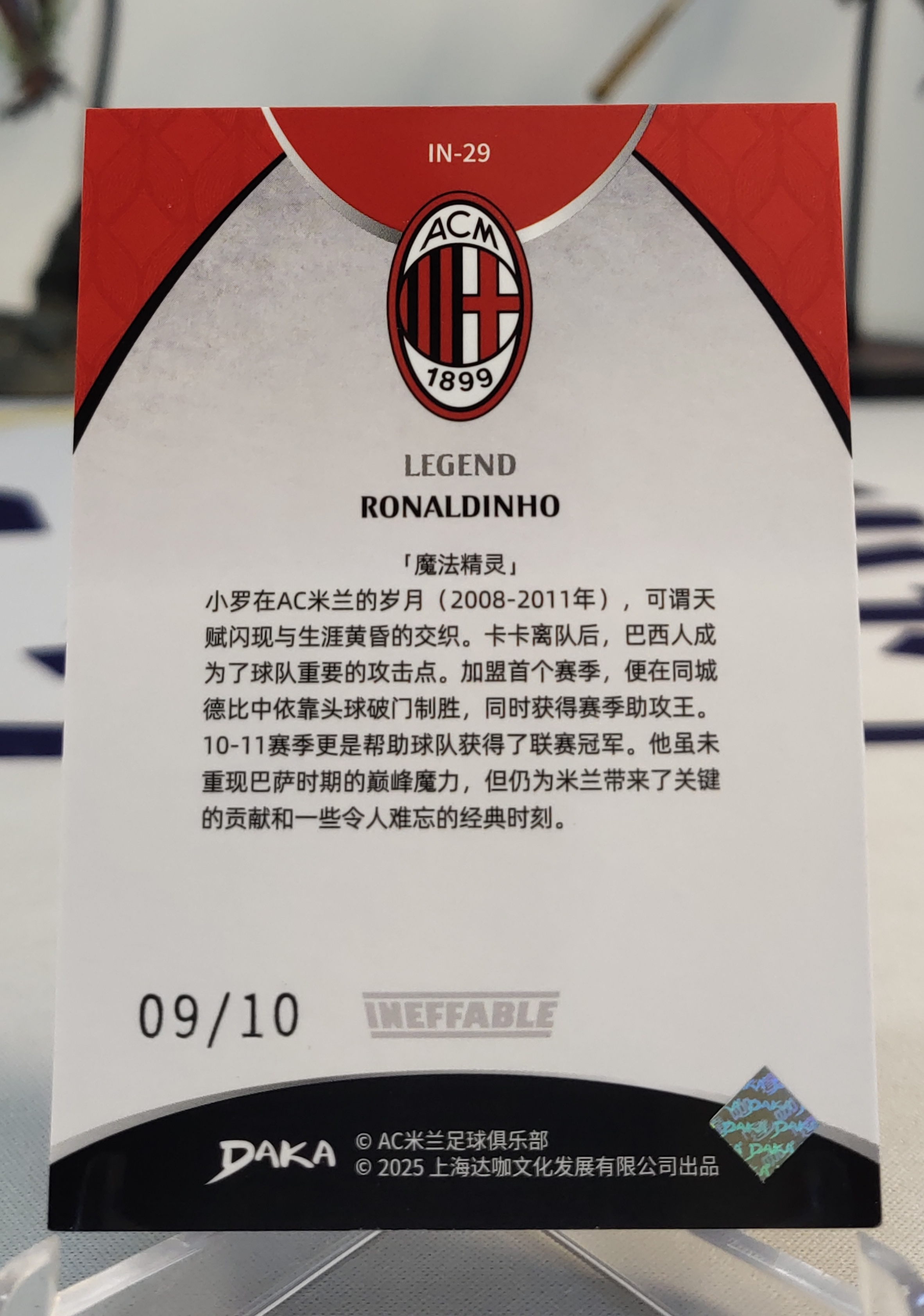2025 DAKA AC米兰队盒 Ronaldinho 达咖 小罗 罗纳尔迪尼奥 金平行 9/10编 超低编 厚卡 巴西 专收收藏必入 品相见图 不累计不到付 钱