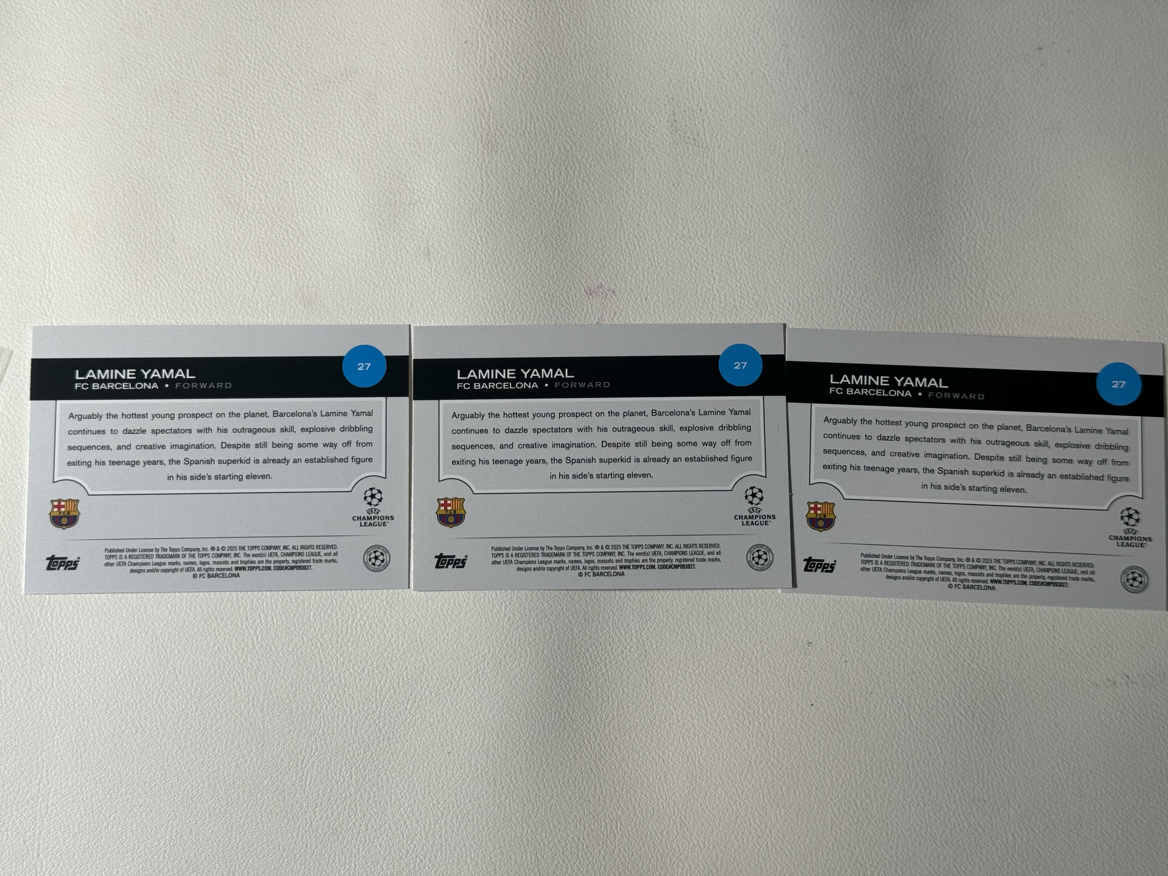 2025 Topps Lamine Yamal 亚马尔 巴萨 西班牙 巴塞罗那 TC future stars base 3张打包 卡品如图 收藏必备