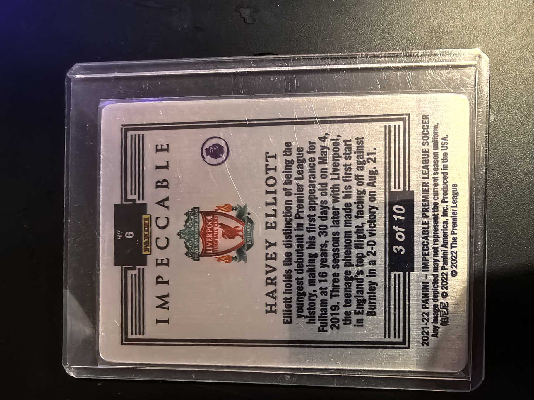 2021-22 Panini Impeccable Harvey Elliott 英超小真金 哈维 埃利奥特 新秀rc 金折 金铁板  3/10编 利物浦 萨拉赫队友