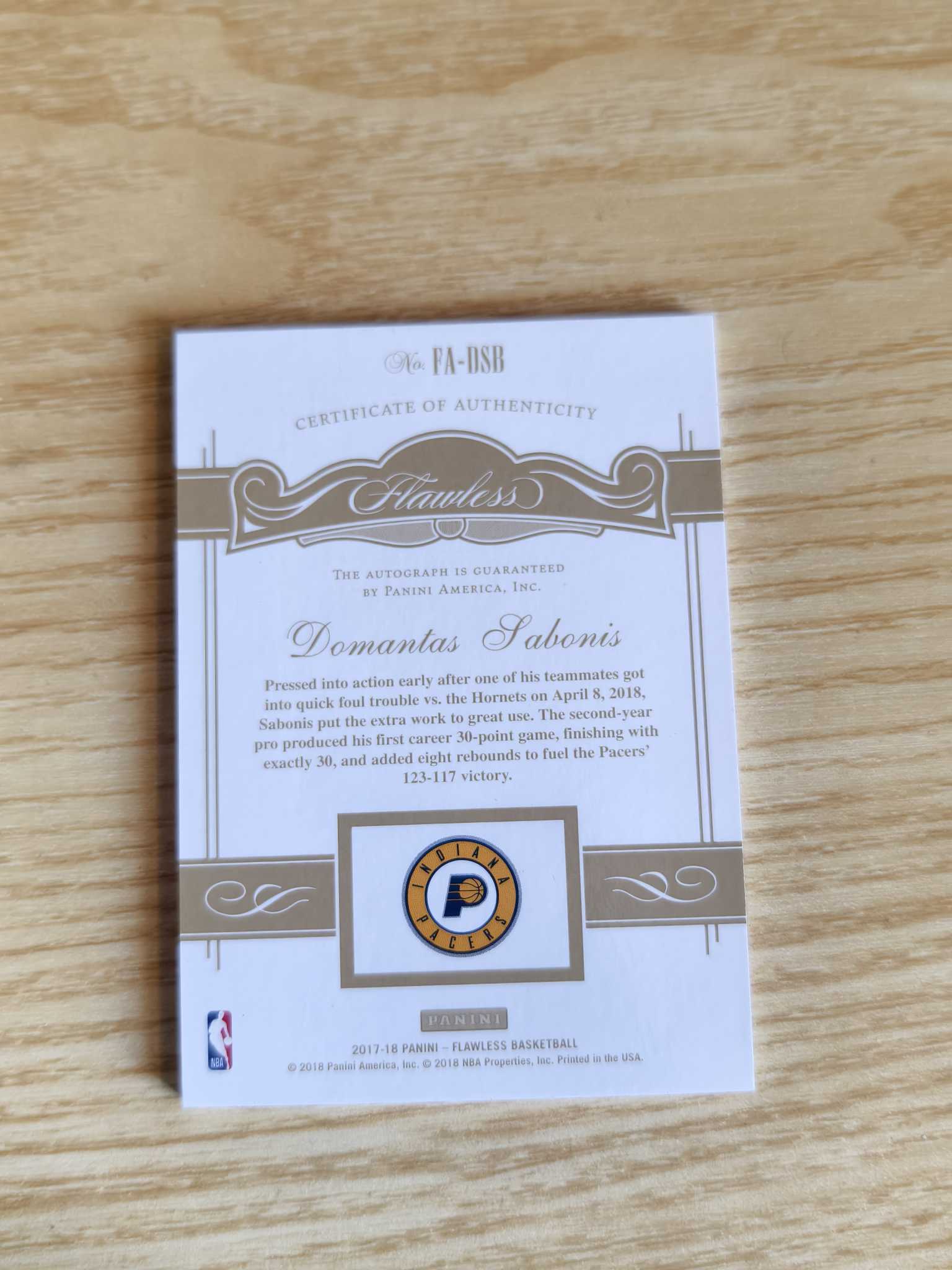 2019-20 Panini Flawless Domantas Sabonis 多曼塔斯 萨博尼斯 步行者 手提 3/25编 银平行 签字卡签 专收必备