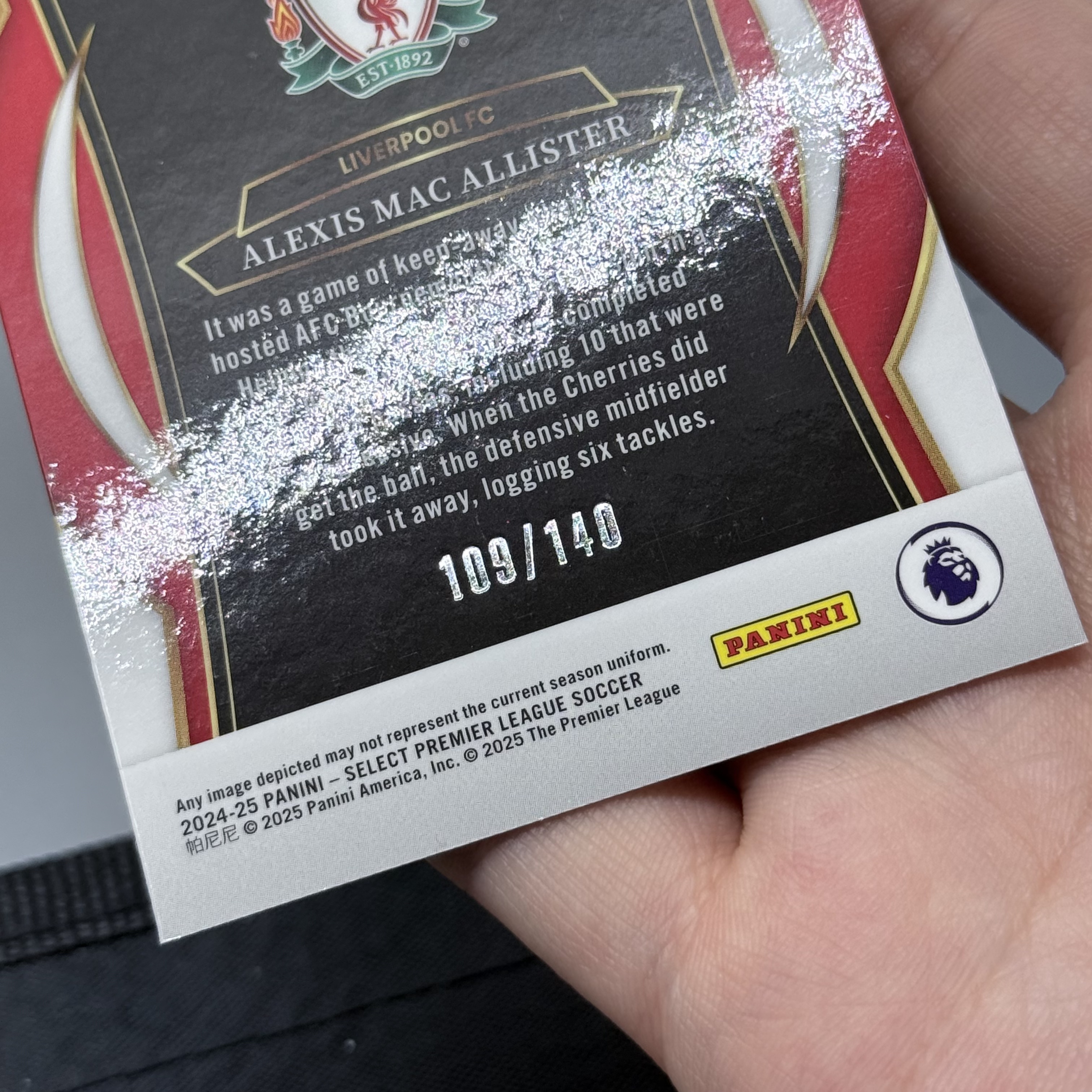 【UD代卖-刺客】2024-25 Panini Select 英超SE Alexis Mac Allister 麦卡利斯特 小麦 利物浦 一级 109/140编 紫折 收藏必备 微瑕 卡品如图