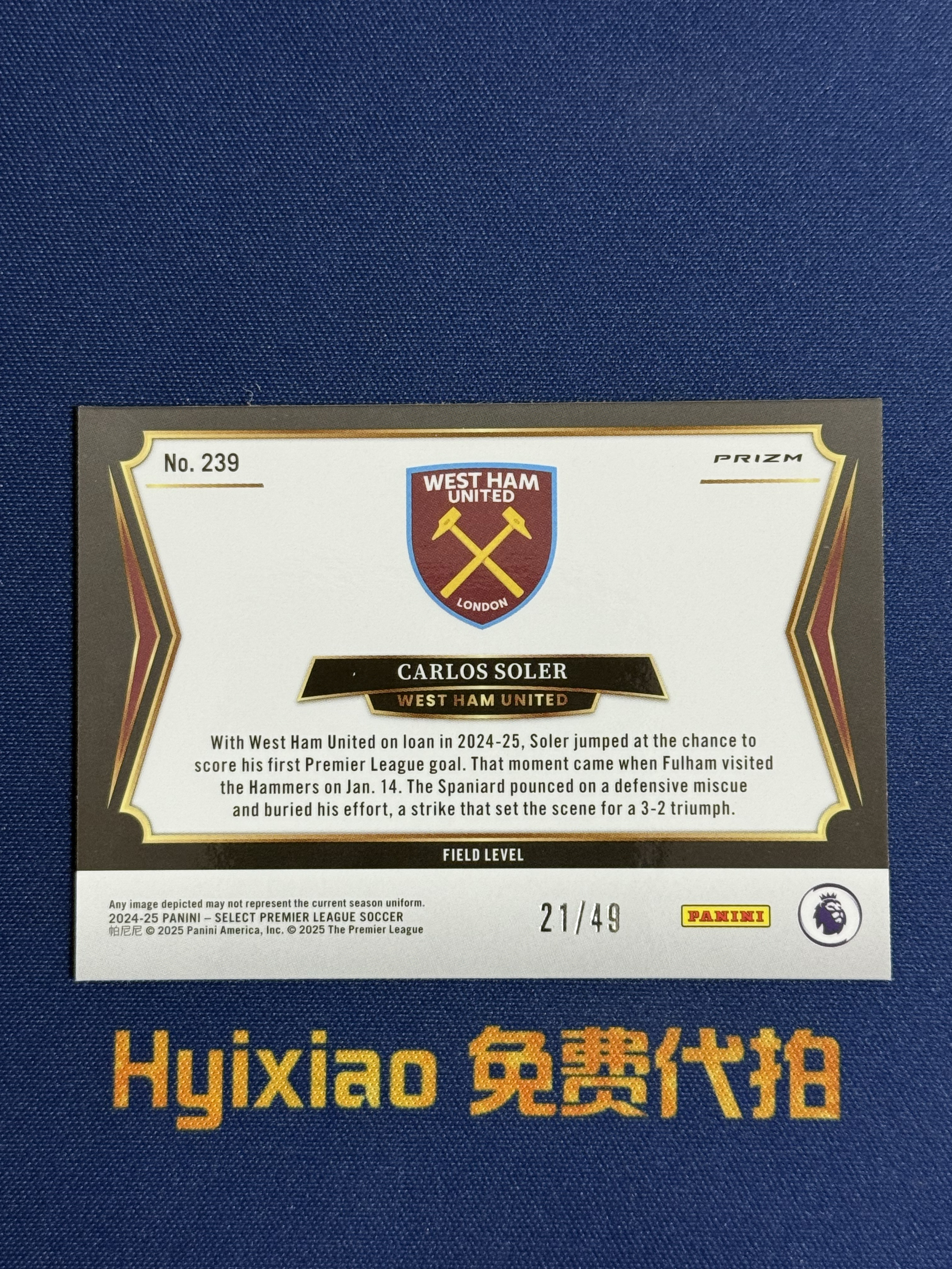 2024-25 Panini Select Carlos Soler premier league 英超 se 索勒 索莱尔 西汉姆联 /49编 蓝迷彩折 三级 卡品如图 收藏必备 jx11