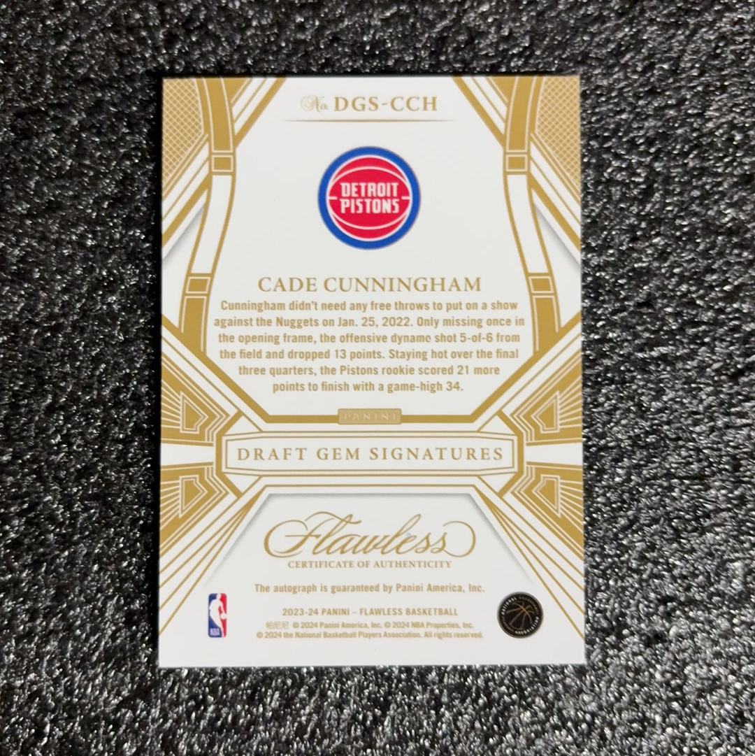 2023-24 Panini Flawless Cade Cunningham 【JZH拍卖】手提 活塞 cc 康宁汉姆 坎宁安 25编 卡签 签字 汪总