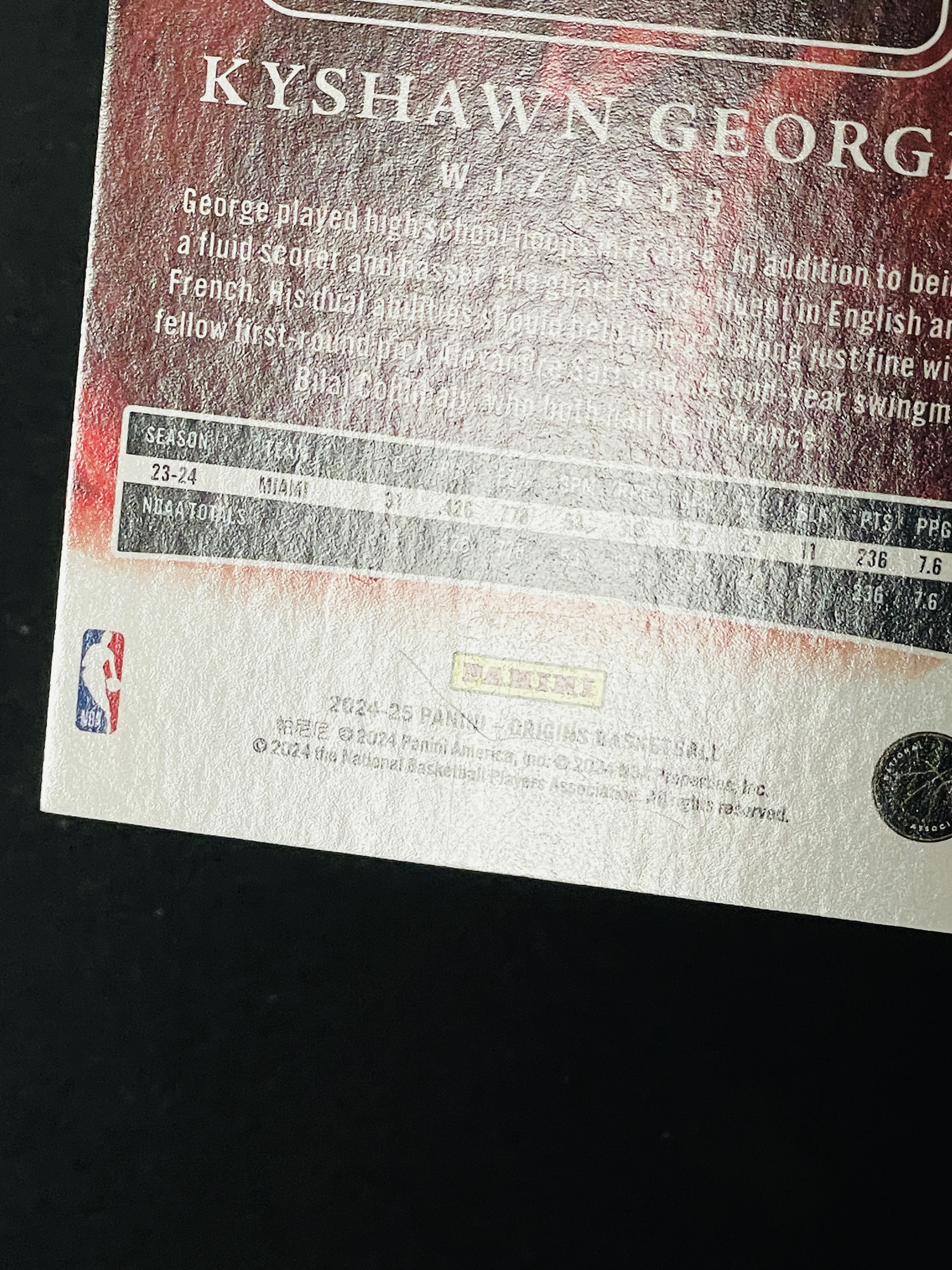 2024-25 Panini Origins Kyshawn George RC 【飞飞代卖】奇才 新秀 凯肖恩乔治 起源 115编 专收凑套必备