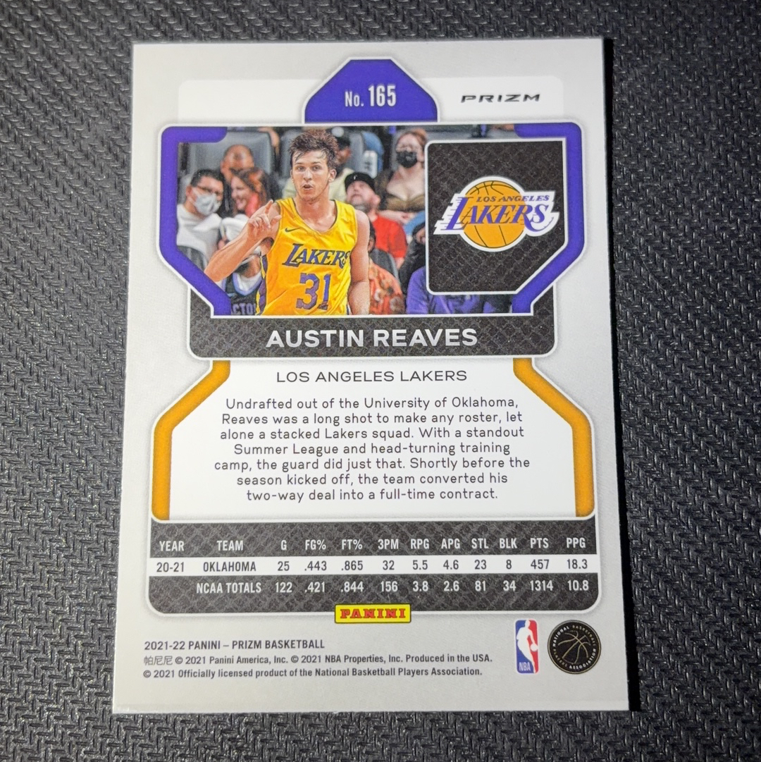 2021-22 Panini Prizm Austin Reaves RC 湖人 奥斯汀 里弗斯 里维斯 里夫斯 新秀 pz base 蓝波纹折 折射 实卡精美 未来可期 收藏必备 专收 凑套