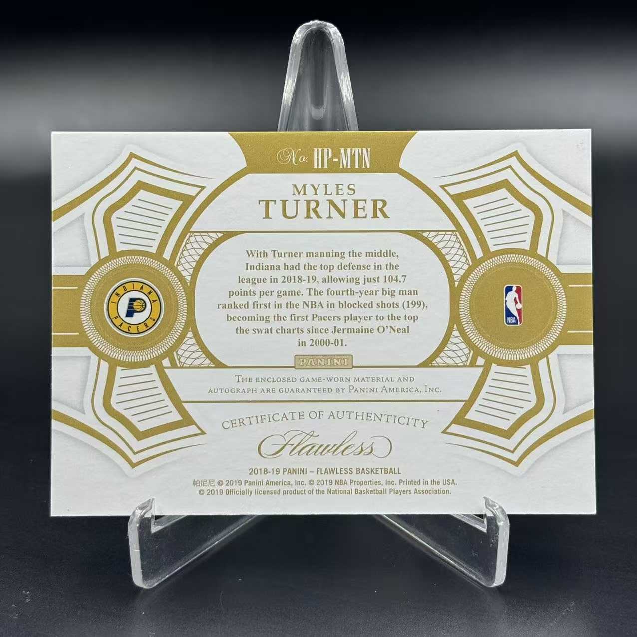 【浩冉拍卖】2018-19 Panini Flawless Myles Turner 手提 步行者迈尔斯 特纳 patch 暴力切割 球衣物料 签字 卡签PA 07/10编 HPA 金版 卡品如图 滔