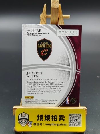 2.参拍:卡品墨迹如图所示(厚卡异形卡等都有正常白边白角,部分系列会有特殊瑕疵),请认真看图后再谨慎出价。不接受任何艺术家买卡,如拍到卡后有任何艺术家行为(包括但不限于在通行卡品里挑瑕疵索要赔偿或退卡等)一律拉黑投诉处理。所卖卡未经描述均为通行品,可能会有细微瑕疵;打包标小卡可能会有不同程度的瑕疵,不保障卡品;评级卡壳和原封砖的磨损不包含在卡品范围内;多张上拍卡品通行的同款卡片随机发货。竞拍前可以私聊要细节图,成交后再以有瑕疵、勿拍等理由退卡的一律拒绝,介意者请勿参拍!参拍即视为已读同意!