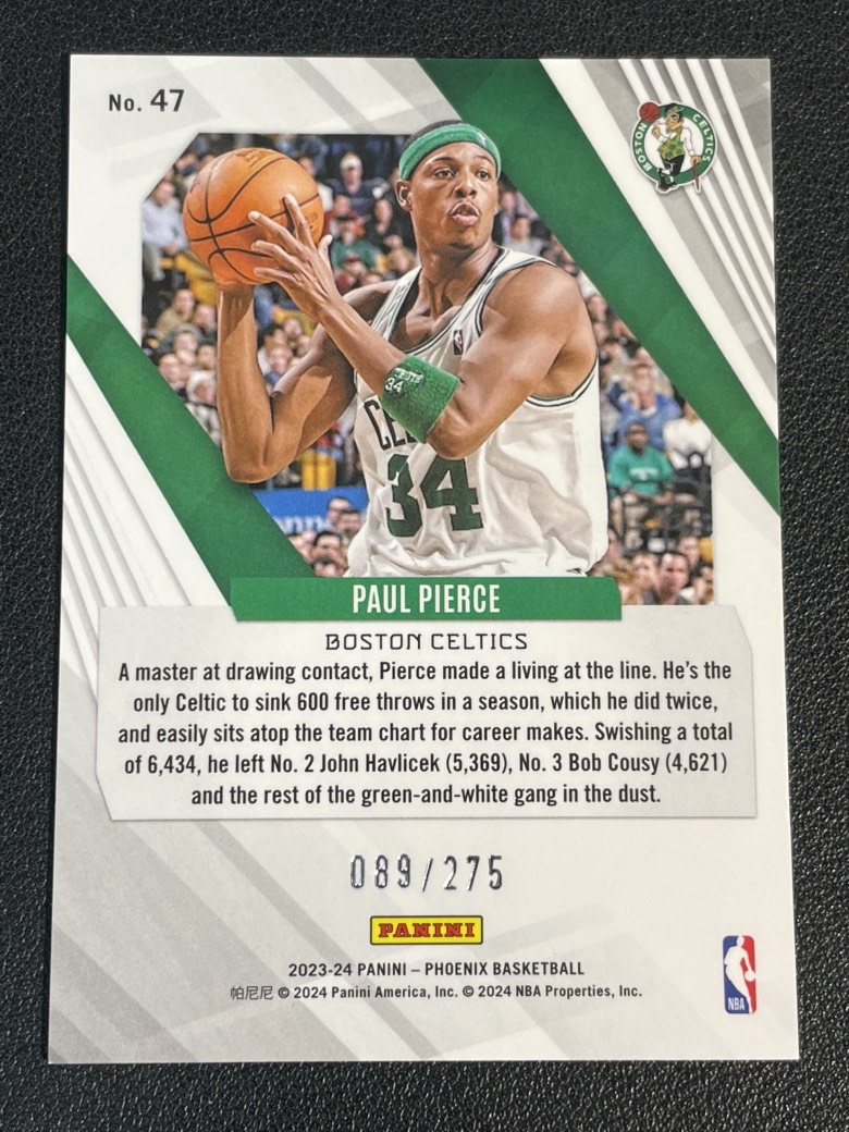 2023-24 Panini Phoenix Paul Pierce 807 保罗 皮尔斯 真理 凤凰 折射 红碎冰折 275编 实卡精美 卡品如图 尖叫代拍 M哥