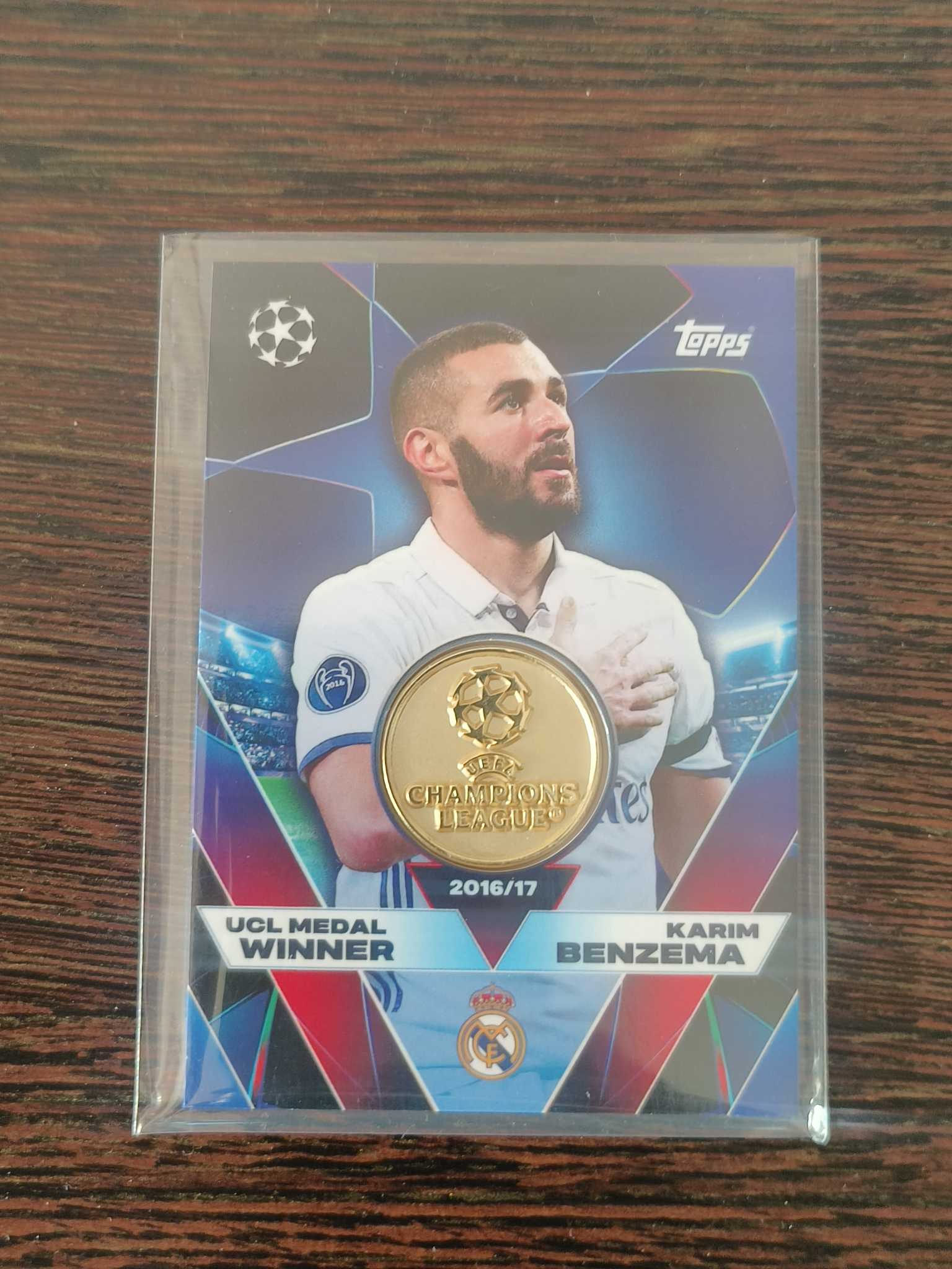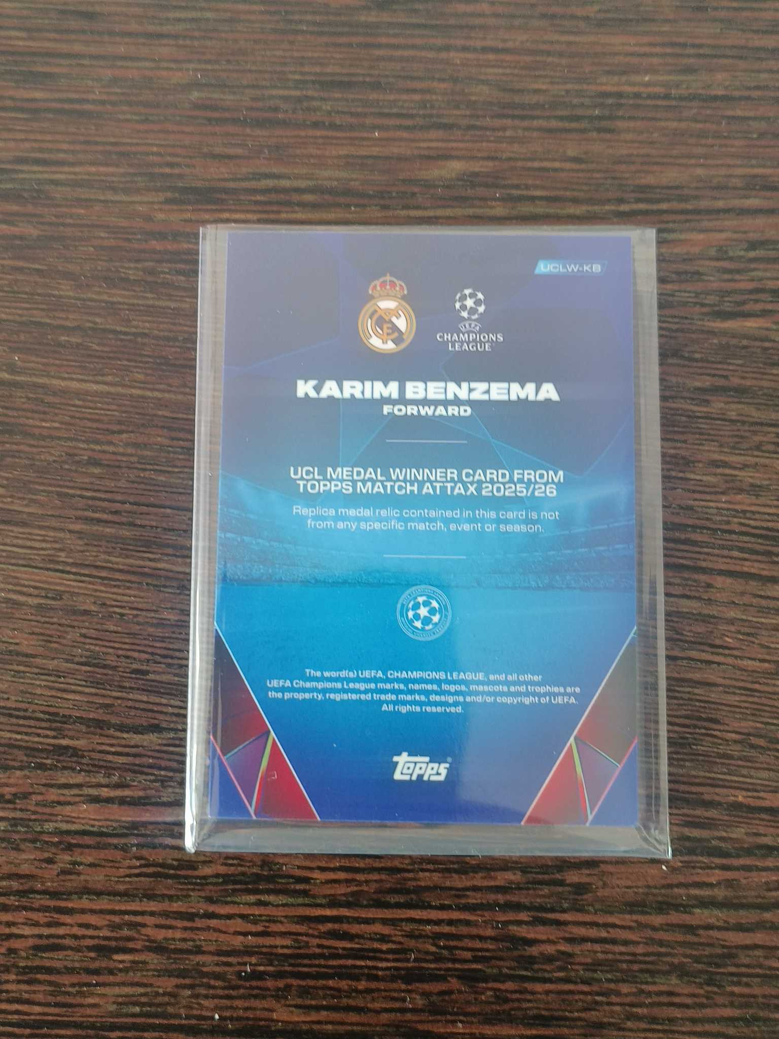 【标准版代拍预付80%】 2025-26 Topps Match Attax Karim Benzema 欧冠游戏版 本泽马 金属实物 欧冠徽章奖牌 冠军金块 大比例 皇马 黑人
