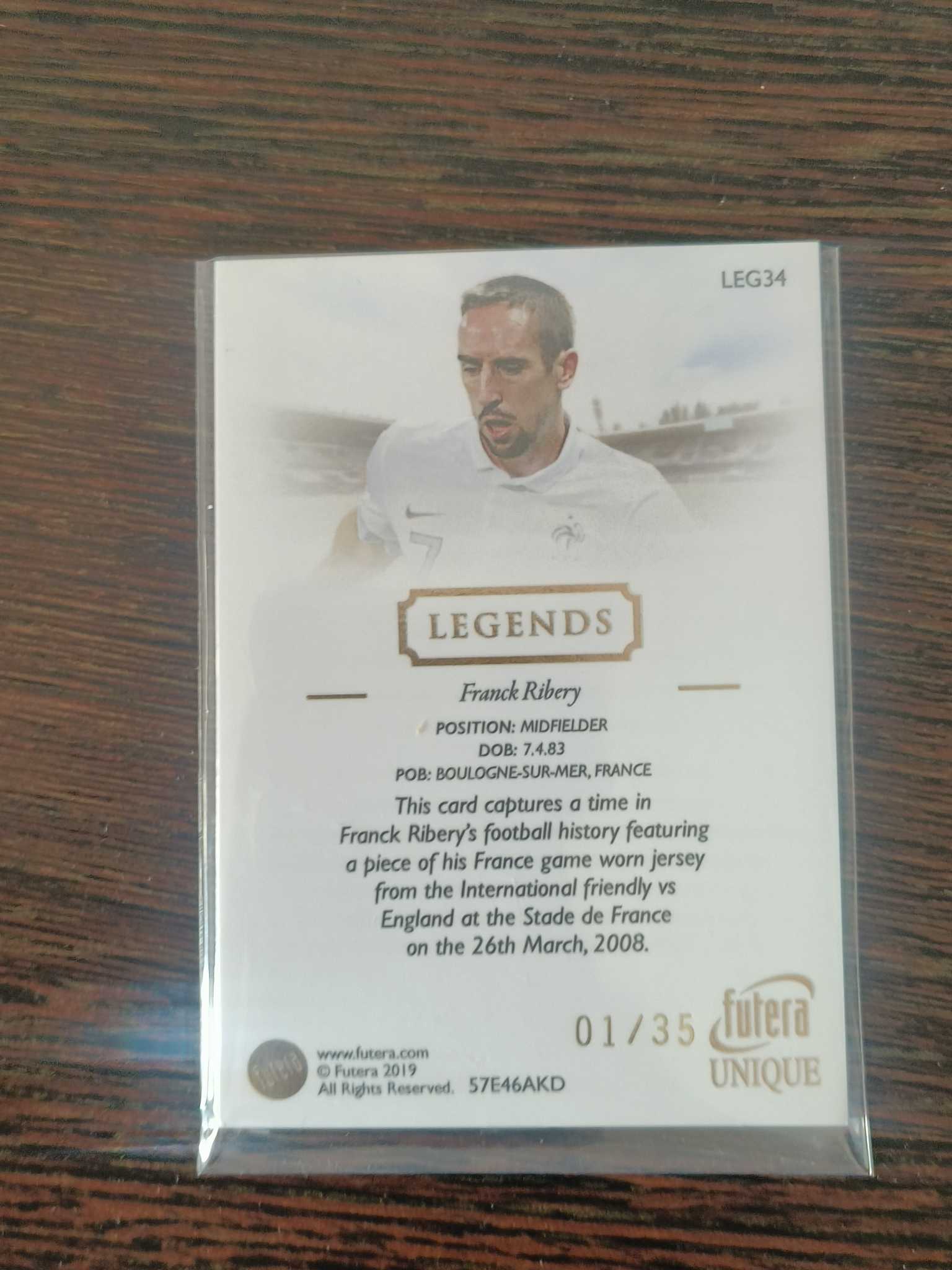 【标准版代拍预付80%】 2019 Futera Unique Franck Ribéry 福特拉 法国 里贝里 1/35编 首编 LEGENDS传奇球衣卡 实物 落场版 拜仁慕尼黑欧冠 黑人