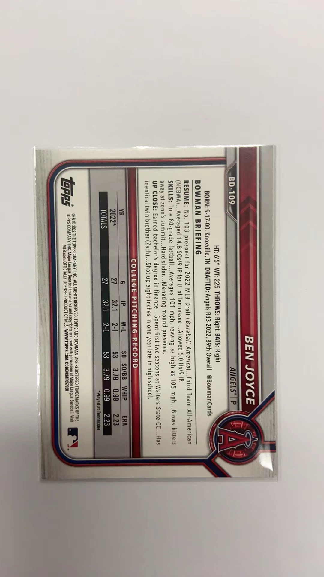 2022 Topps Bowman Chrome BEN JOYCE 卡片如图 收藏必备 凑套必备