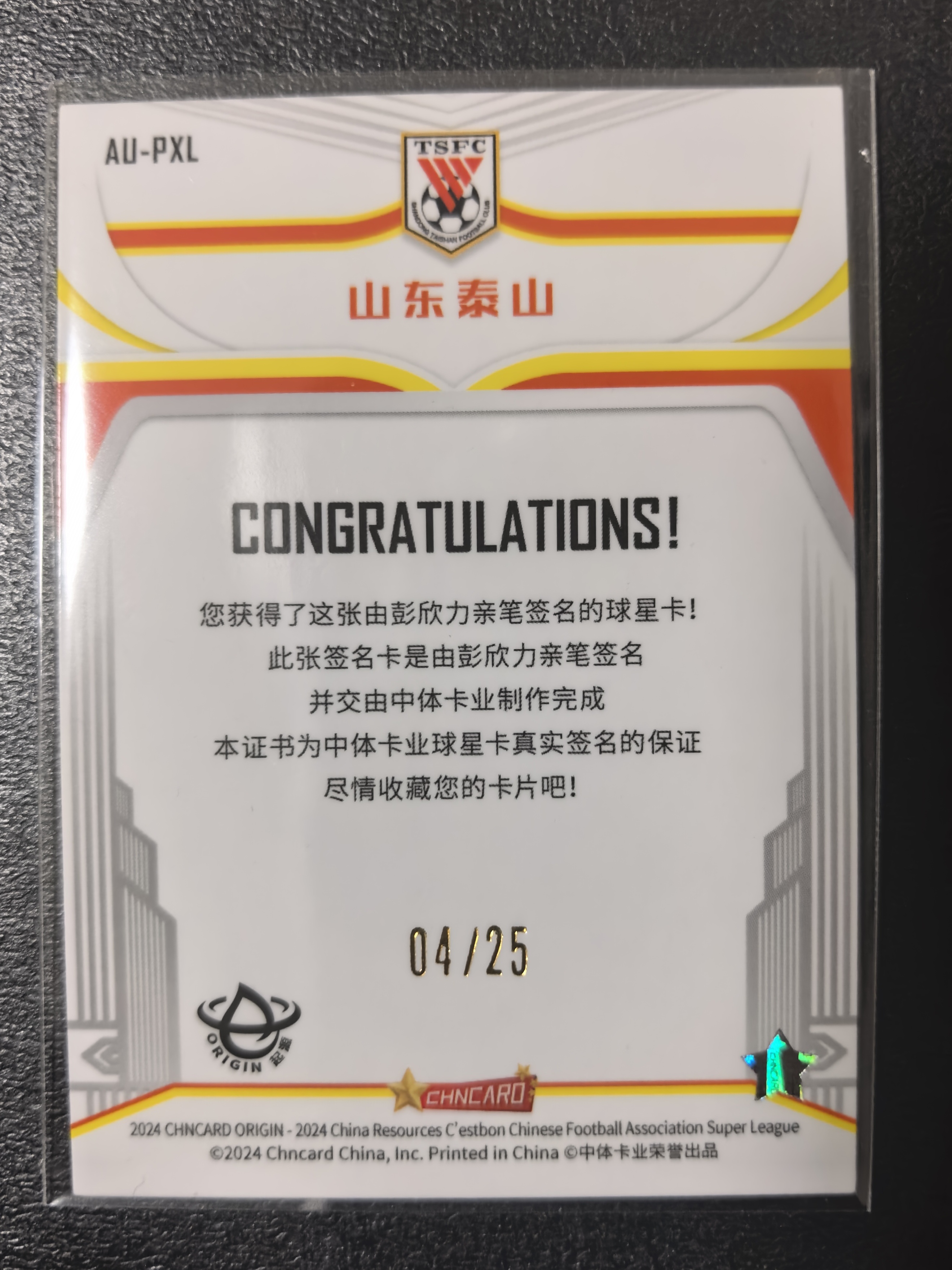 2024 中体卡业 ACTAD Peng Xinli 彭欣力 中超 渲染 签字卡 25编 山东鲁能 完美签 低编 卡品如图