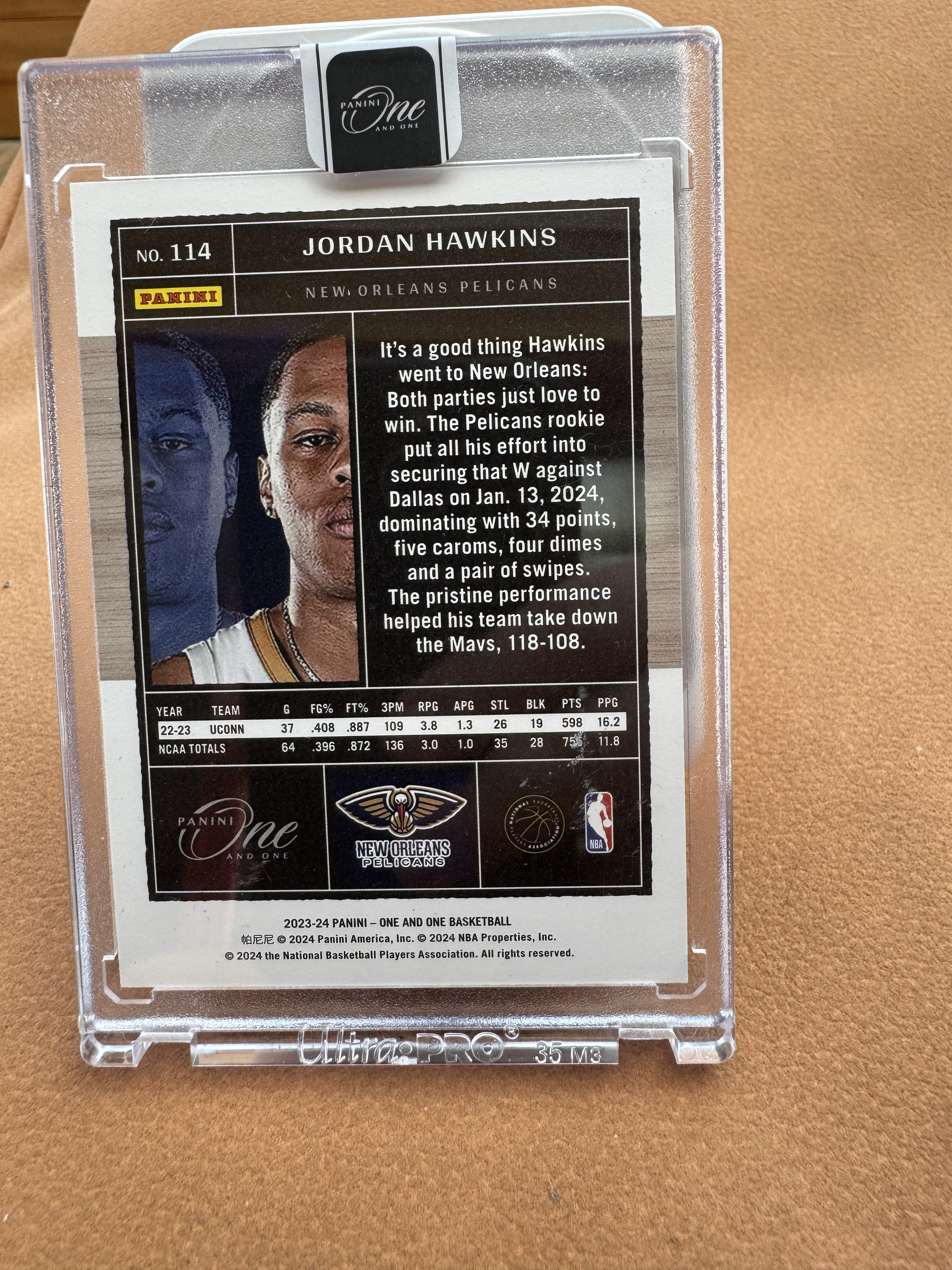2023-24 Panini One and One Jordan Hawkins RC 鹈鹕 新秀RC 乔丹 霍金斯 10/10编 尾编 金折 base 原封砖 未来可期 收藏必备