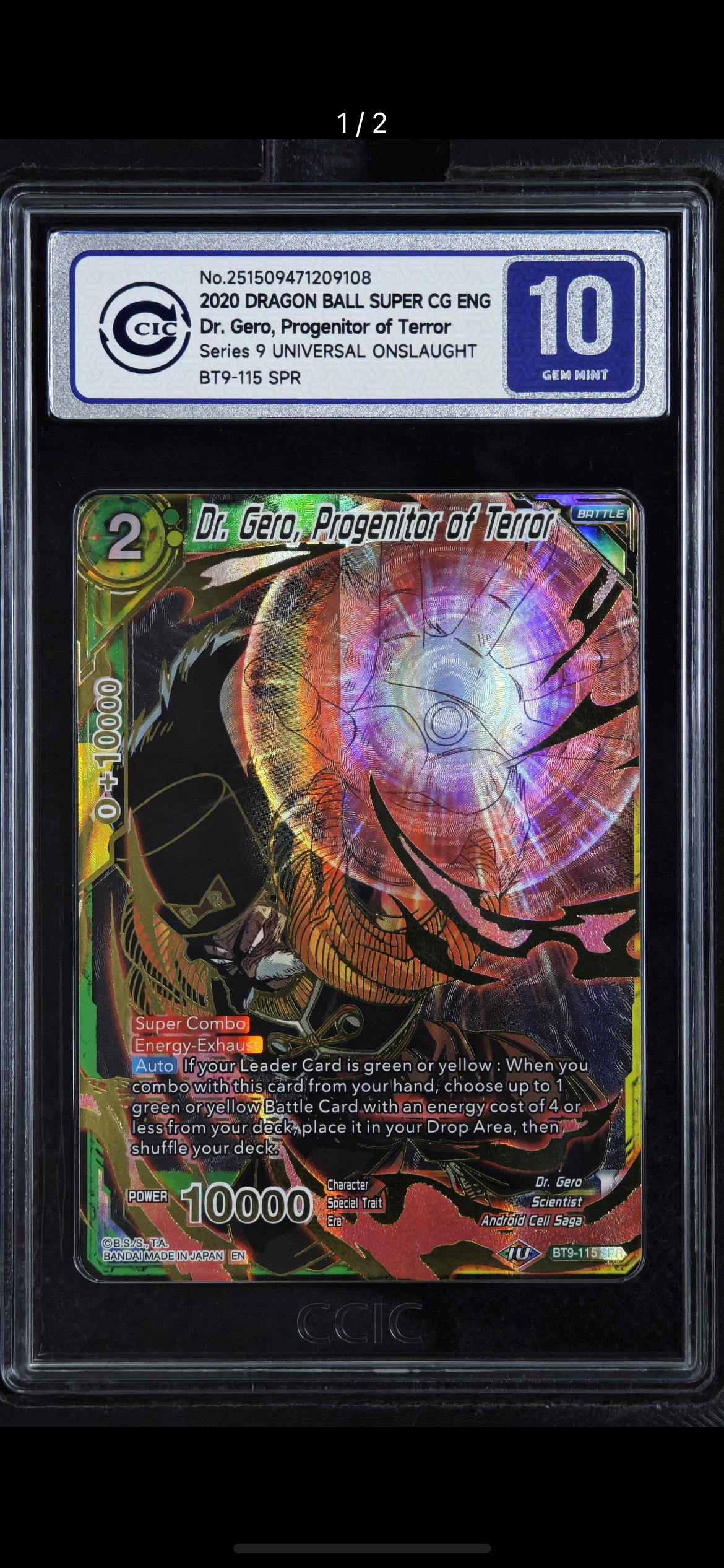 2018 龙珠融合世界 BANDAI DRAGON BALL 万代美版龙珠 BT9 绝版老弹BT9博士SPR,CCIC评级银十,卡品如图 en