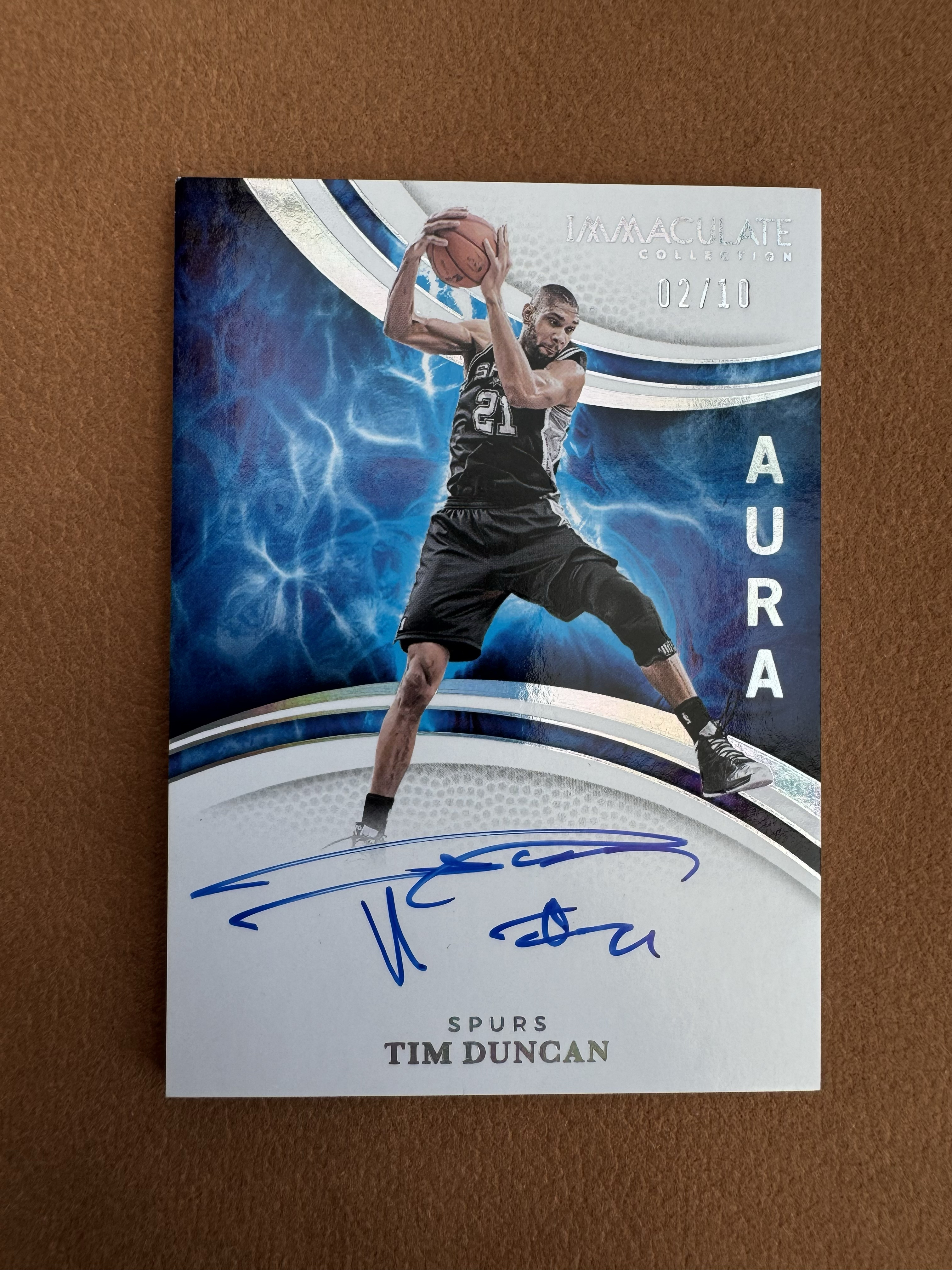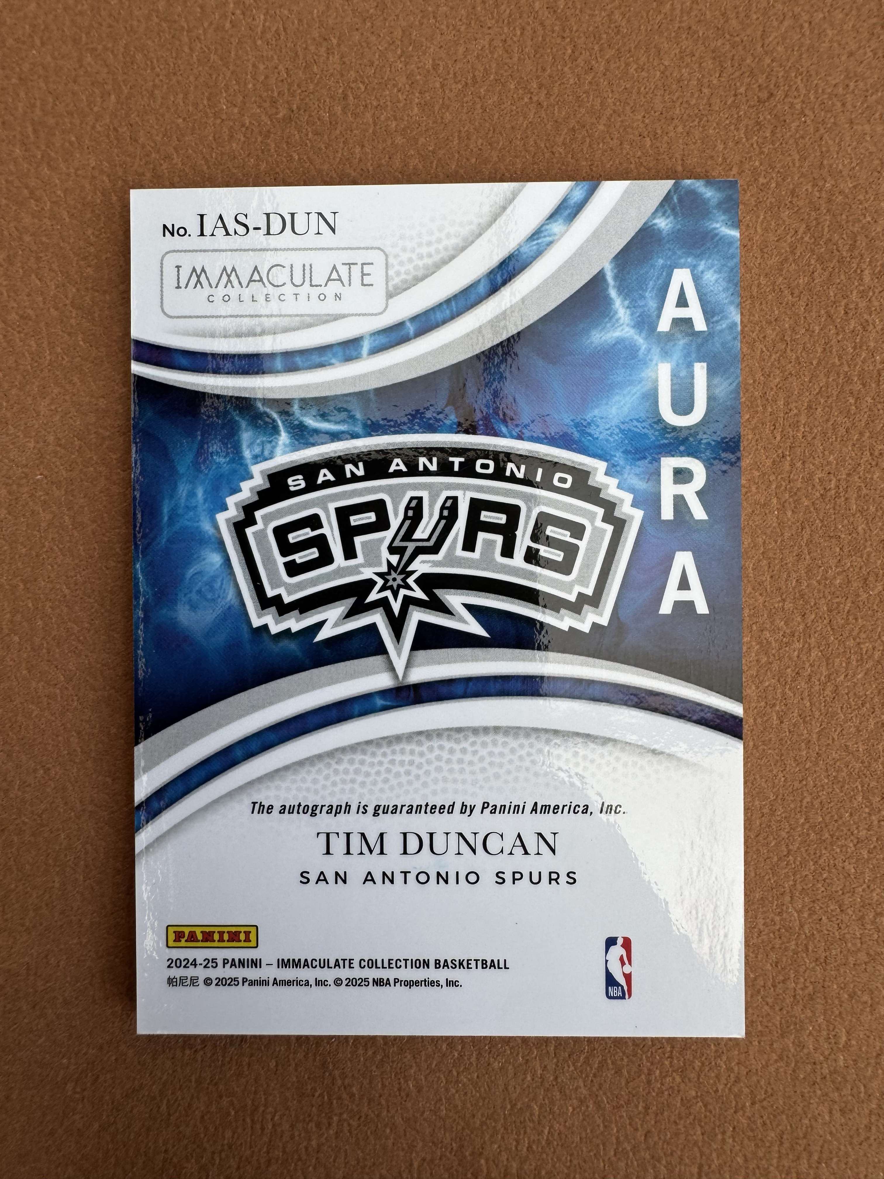 2024-25 Panini Immaculate Tim Duncan 爱咪咪 马刺 蒂姆 邓肯 石佛 02/10编 卡签aura 气场签 板签 金平行 名人堂传奇 实卡美丽 收藏必备