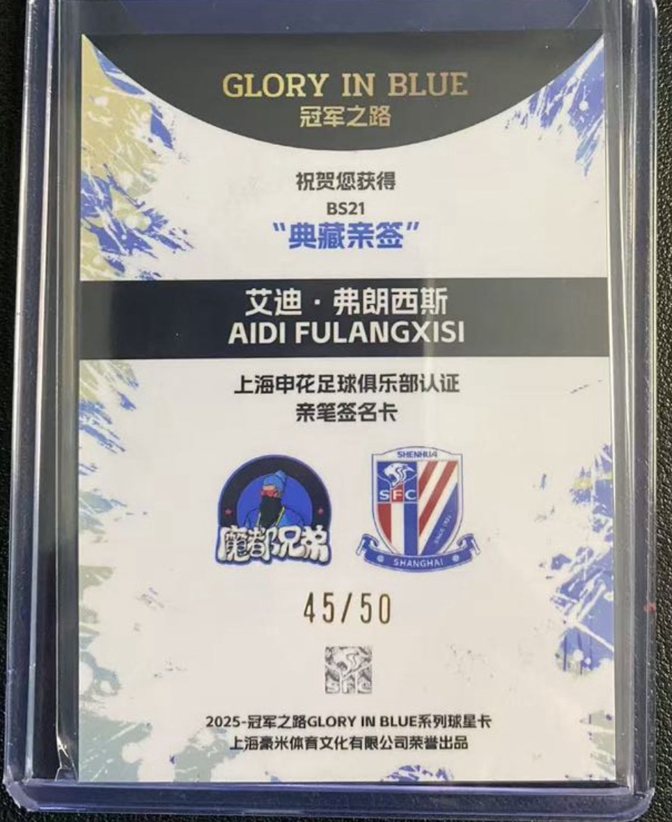 2025 毫米体育 魔都兄弟 艾迪·弗朗西斯 签字 卡签 典藏签 冠军之路 上海申花 45/50编 蓝折 折射
