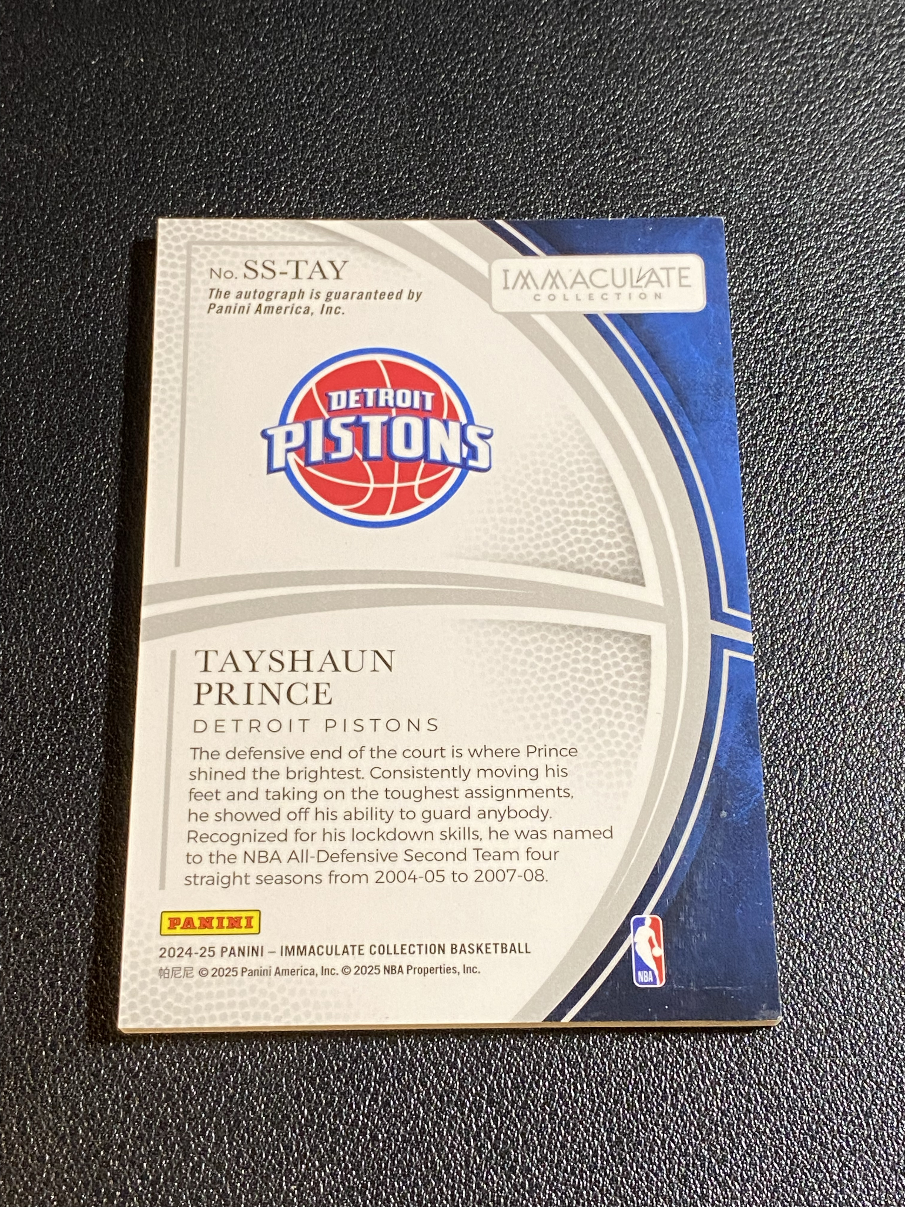 2024-25 Panini Immaculate Tayshaun Prince 爱咪咪系列 活塞 泰肖恩 普林斯 沙盒签 签字 卡签 50/99编 瑕疵如图 送砖 拍卡请看描述 「粉总」