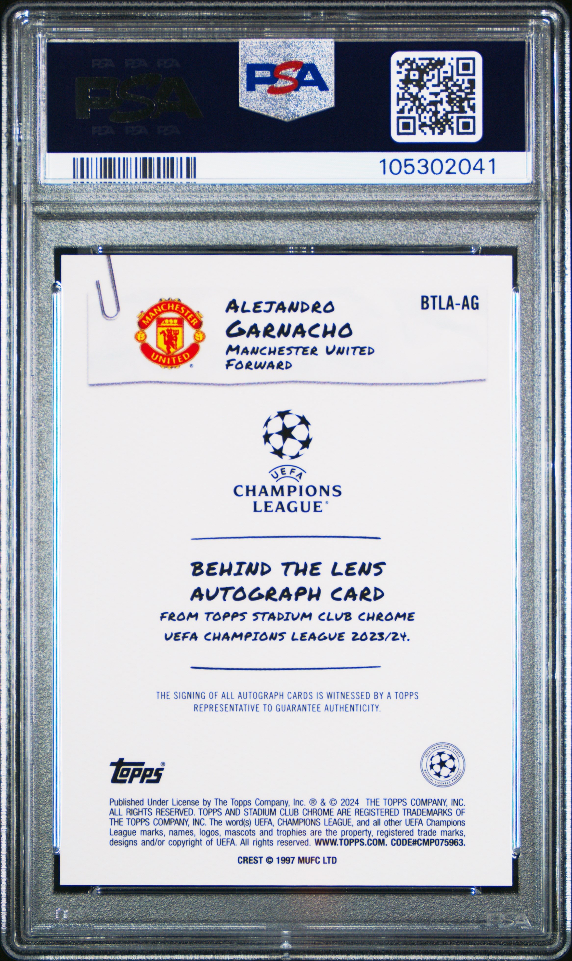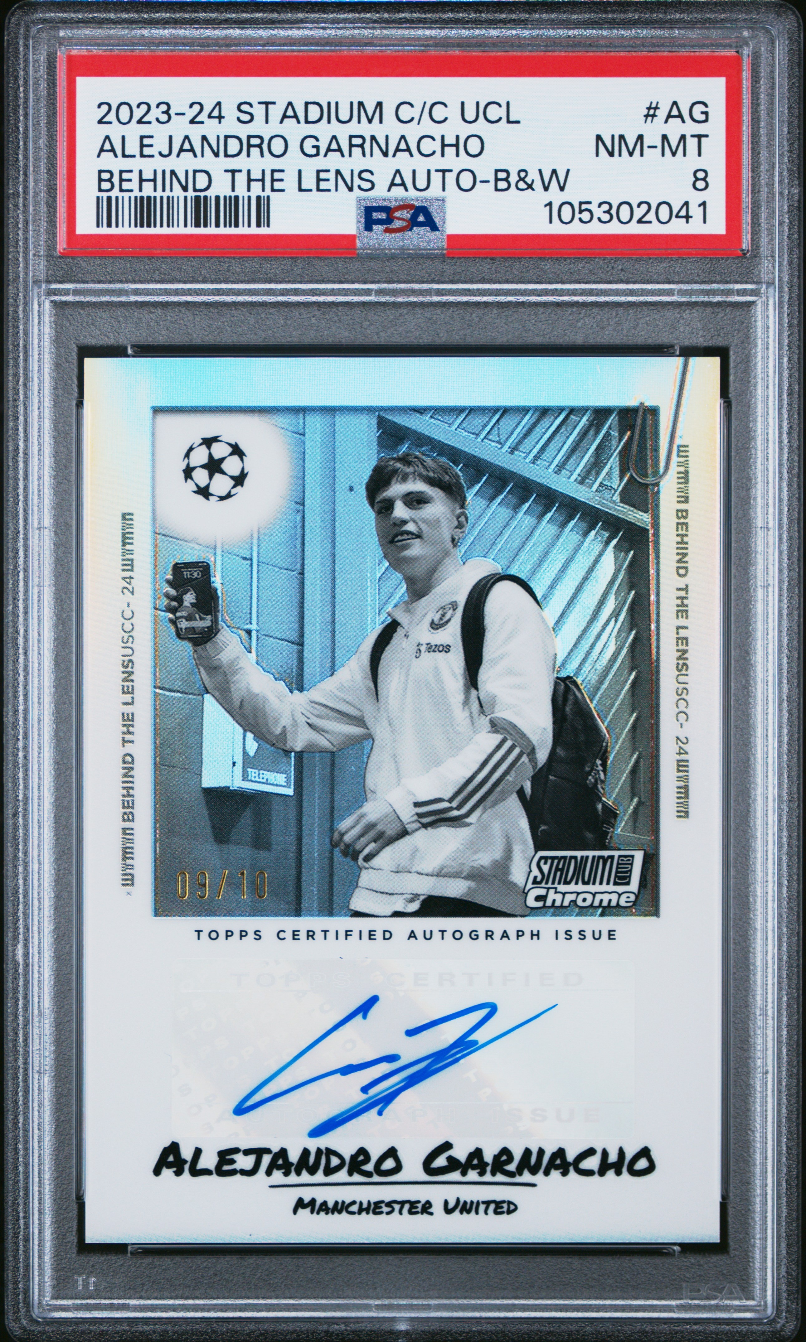2023-24 Topps Stadium Alejandro Garnacho 欧战竞技场 曼联 红魔 加纳乔 10编 签字 黑白折 幕后签 切尔西 阿根廷 单一平行?PSA评级 战神无双(花海)