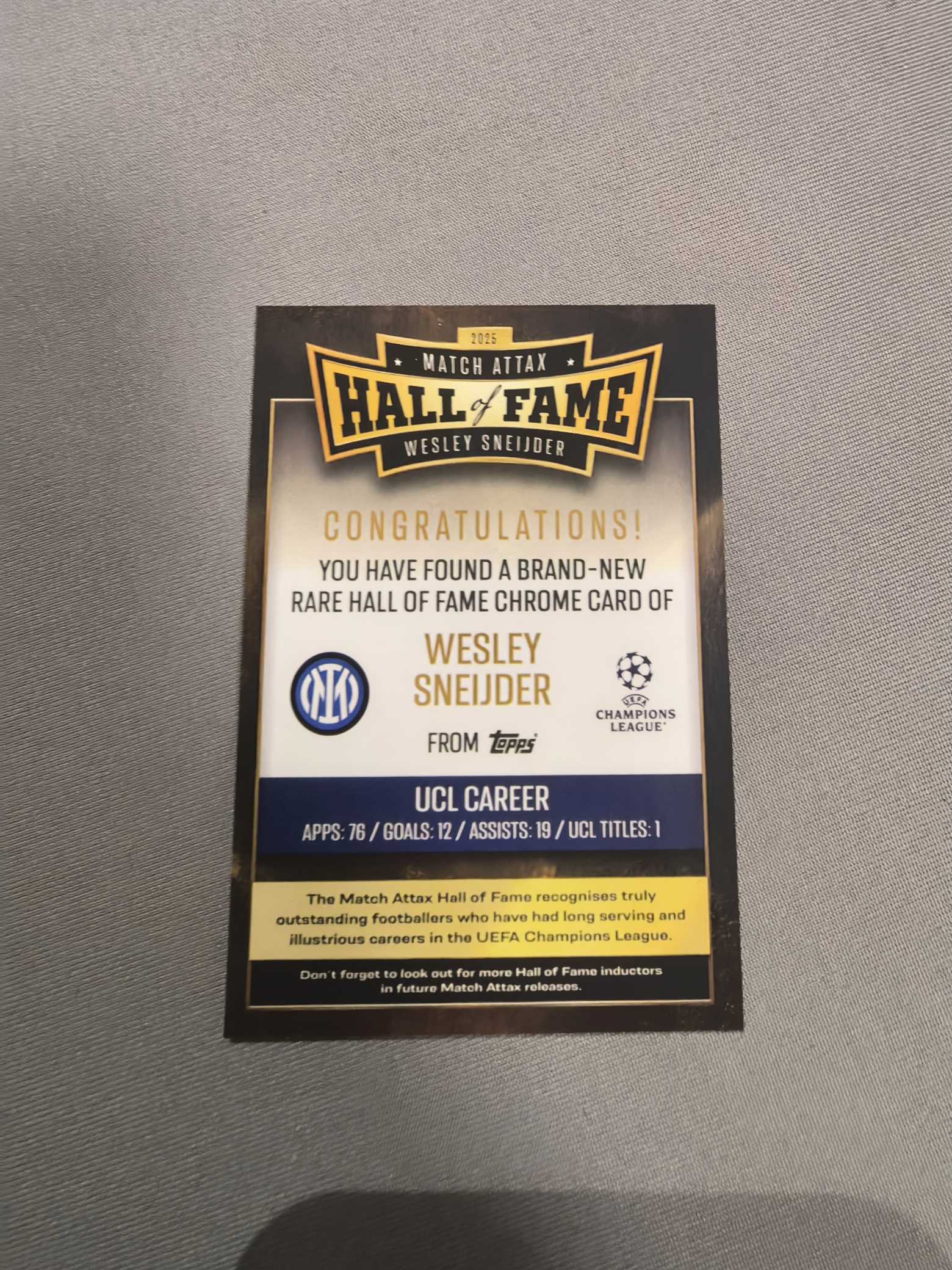 2025 Topps match attax wesley sneijder 【FIXU代卖】斯内德 国际米兰 chrome 超大比例 五头特卡 2025/26 新赛季 凑套必备 通行品