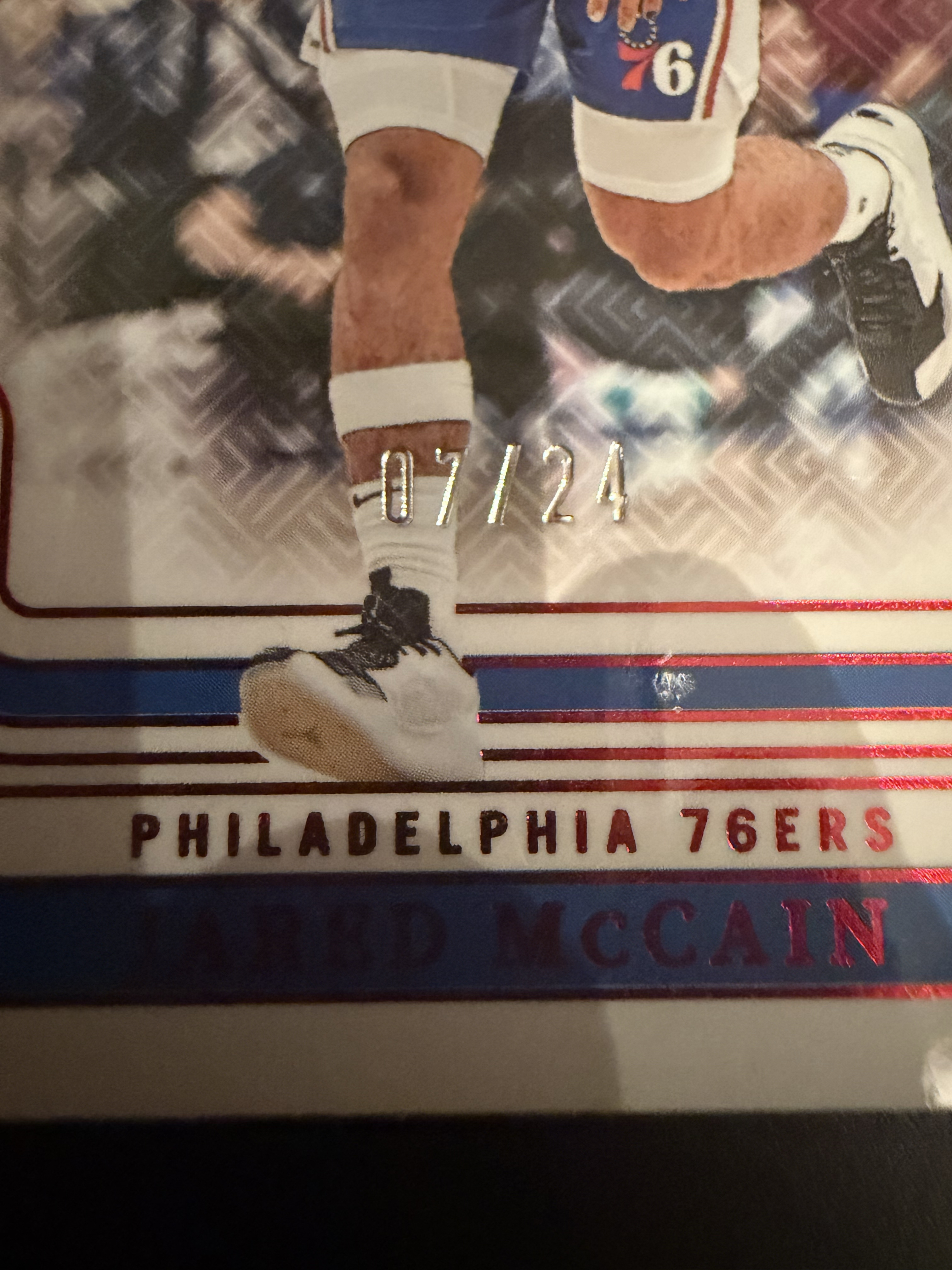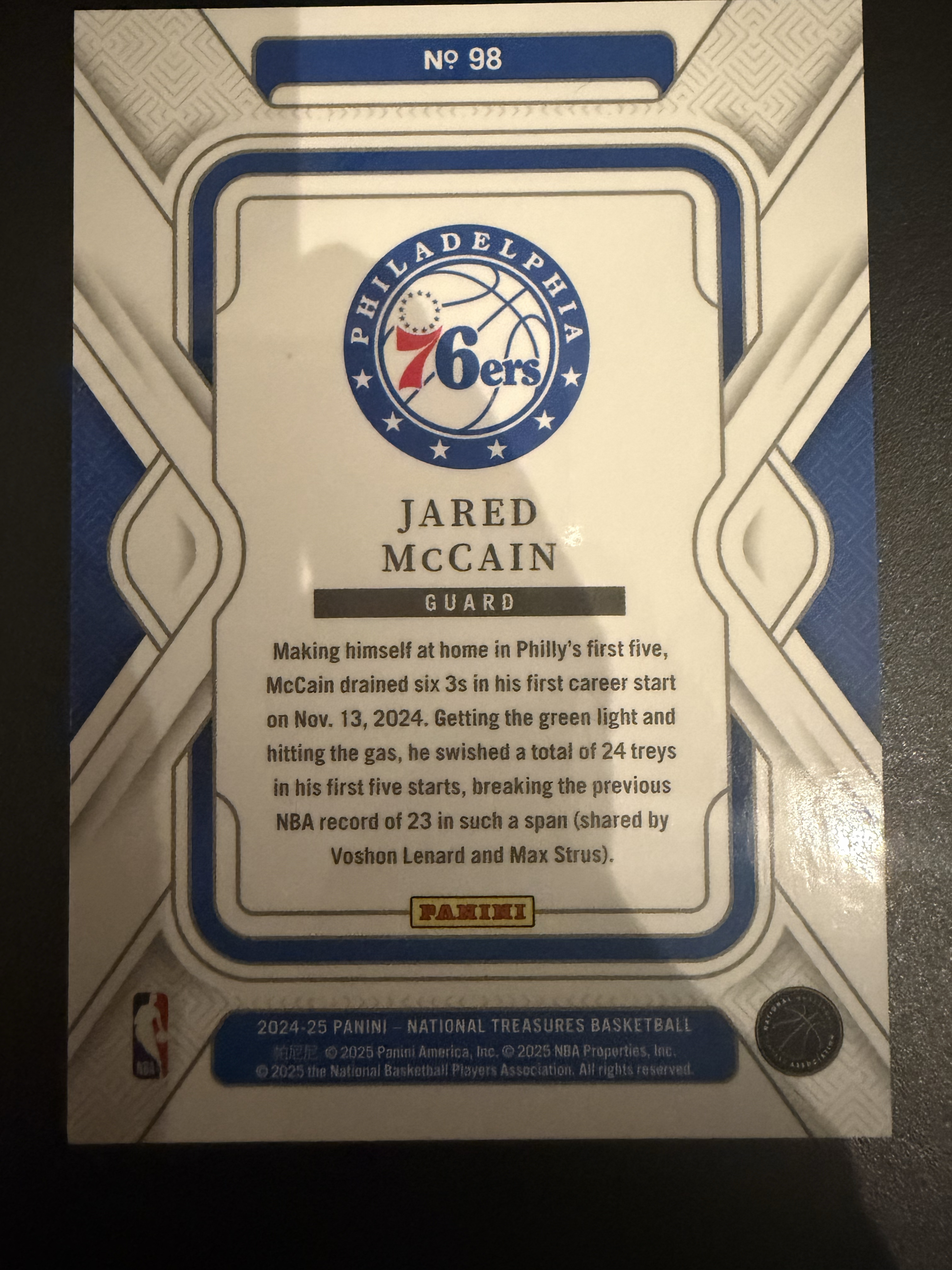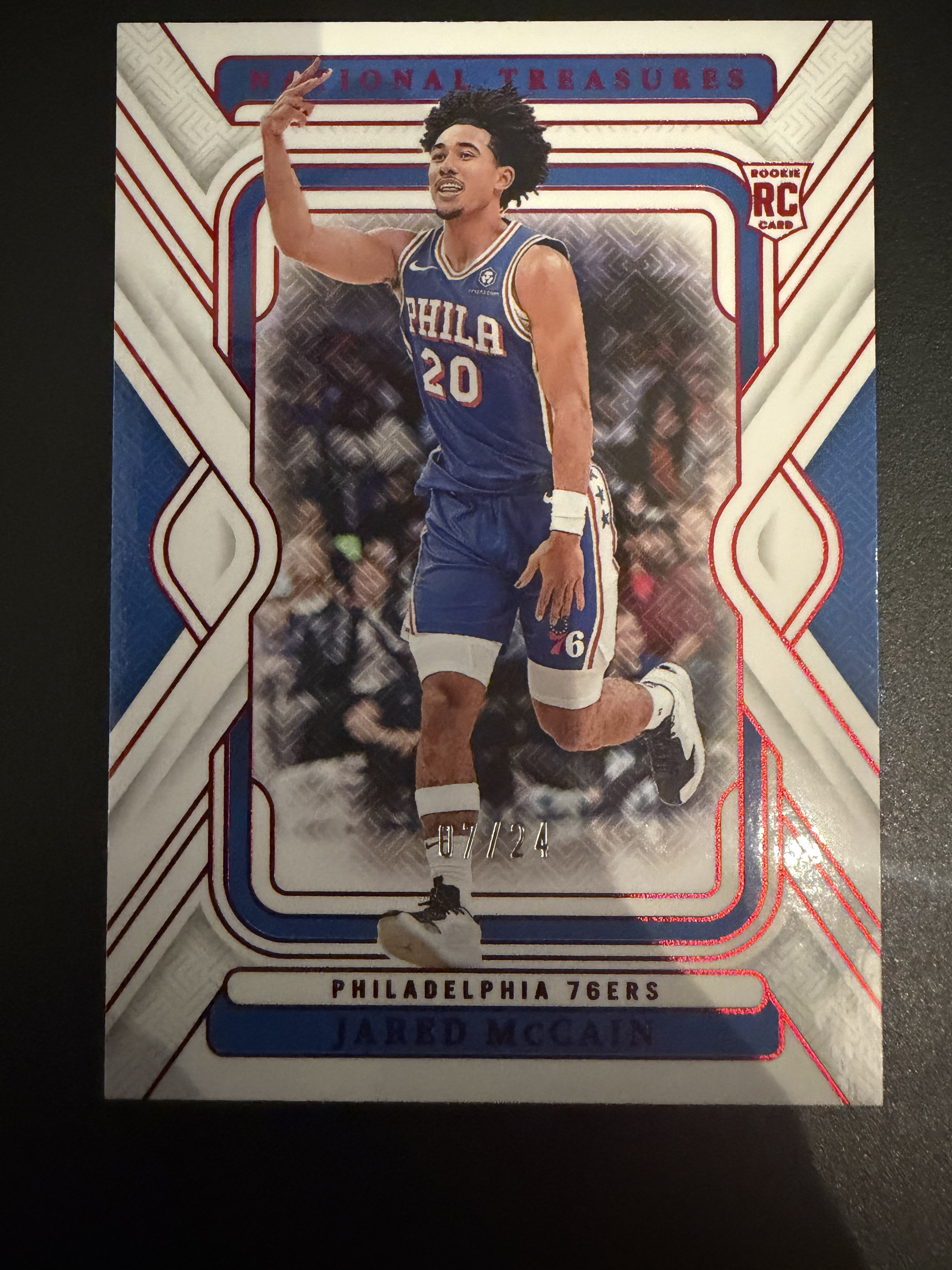 2024-25 Panini National Treasures Jared McCain RC 24编国宝国际红平行76人新秀贾里德麦凯恩base,卡品如图,收藏佳品,拍下后1-3天发货