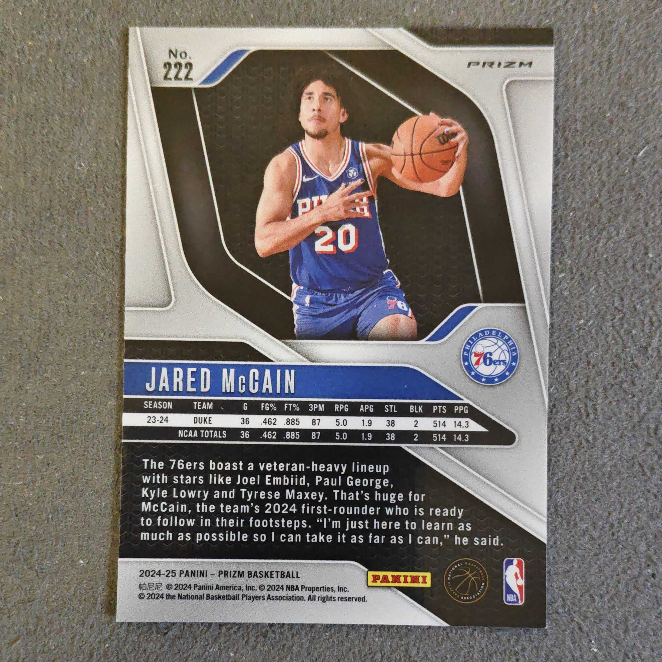2024-25 Panini Prizm Jared McCain RC prizm 贾里德 麦凯恩 魔仙哥 RC 新秀 粉碎冰折 76人