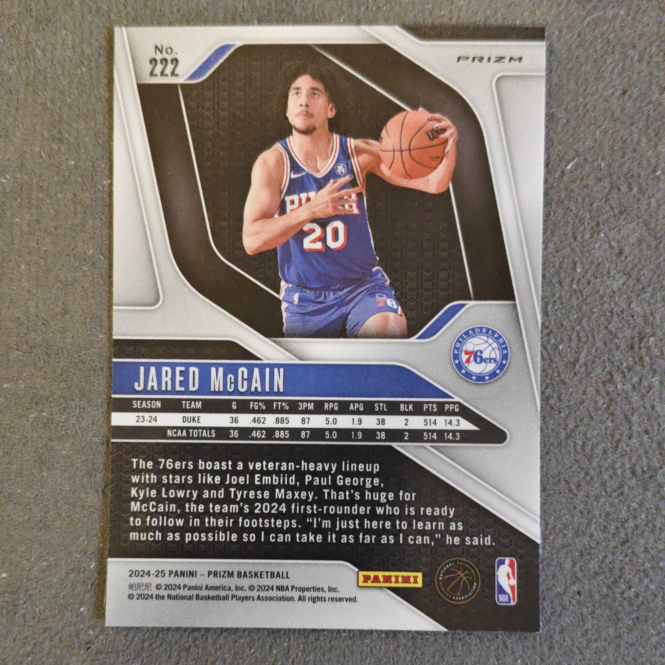 2024-25 Panini Prizm Jared McCain RC PZ系列 新秀RC 贾里德 麦凯恩 正银折射 76人 魔仙哥 未来可期 值得珍藏
