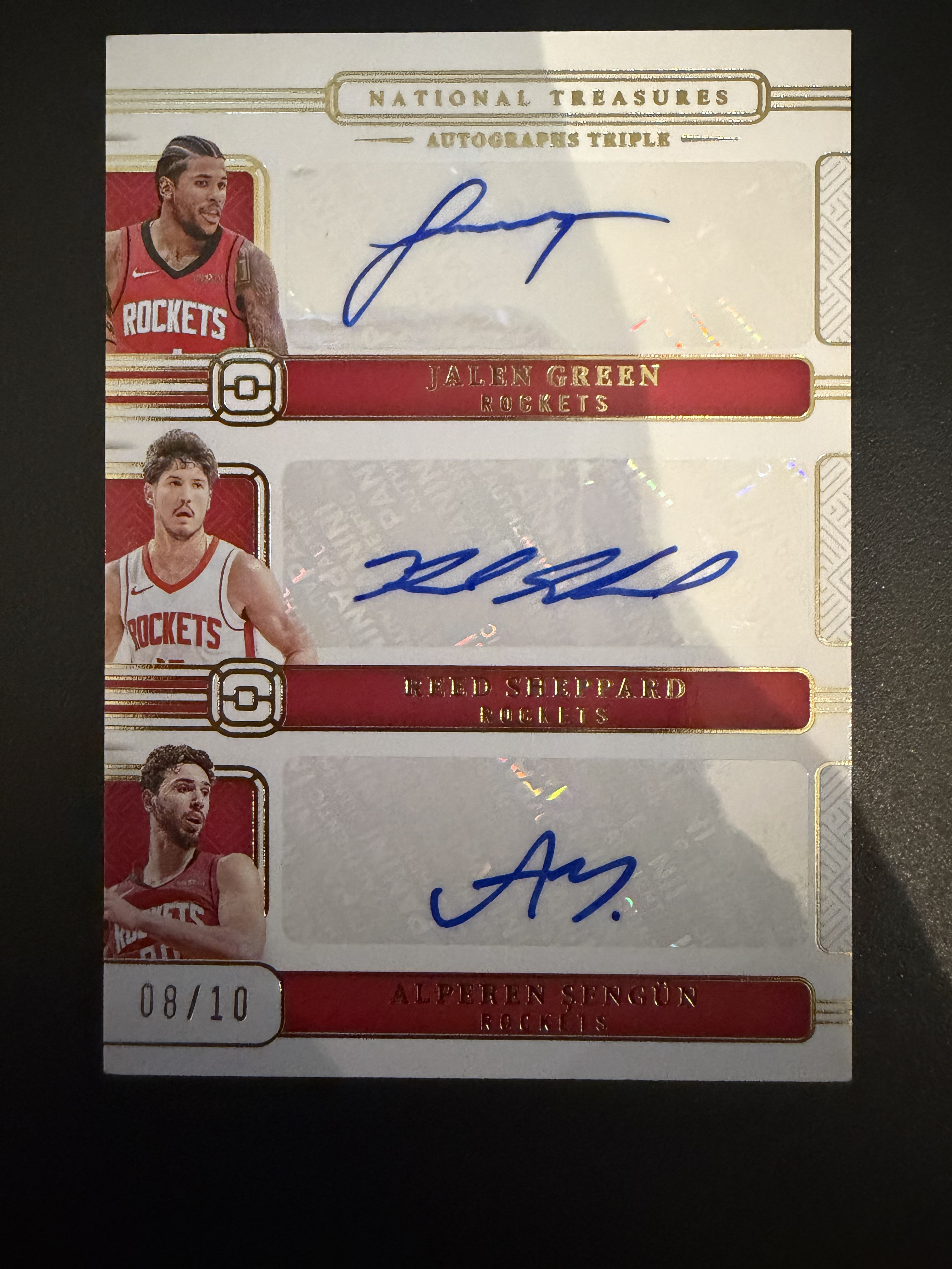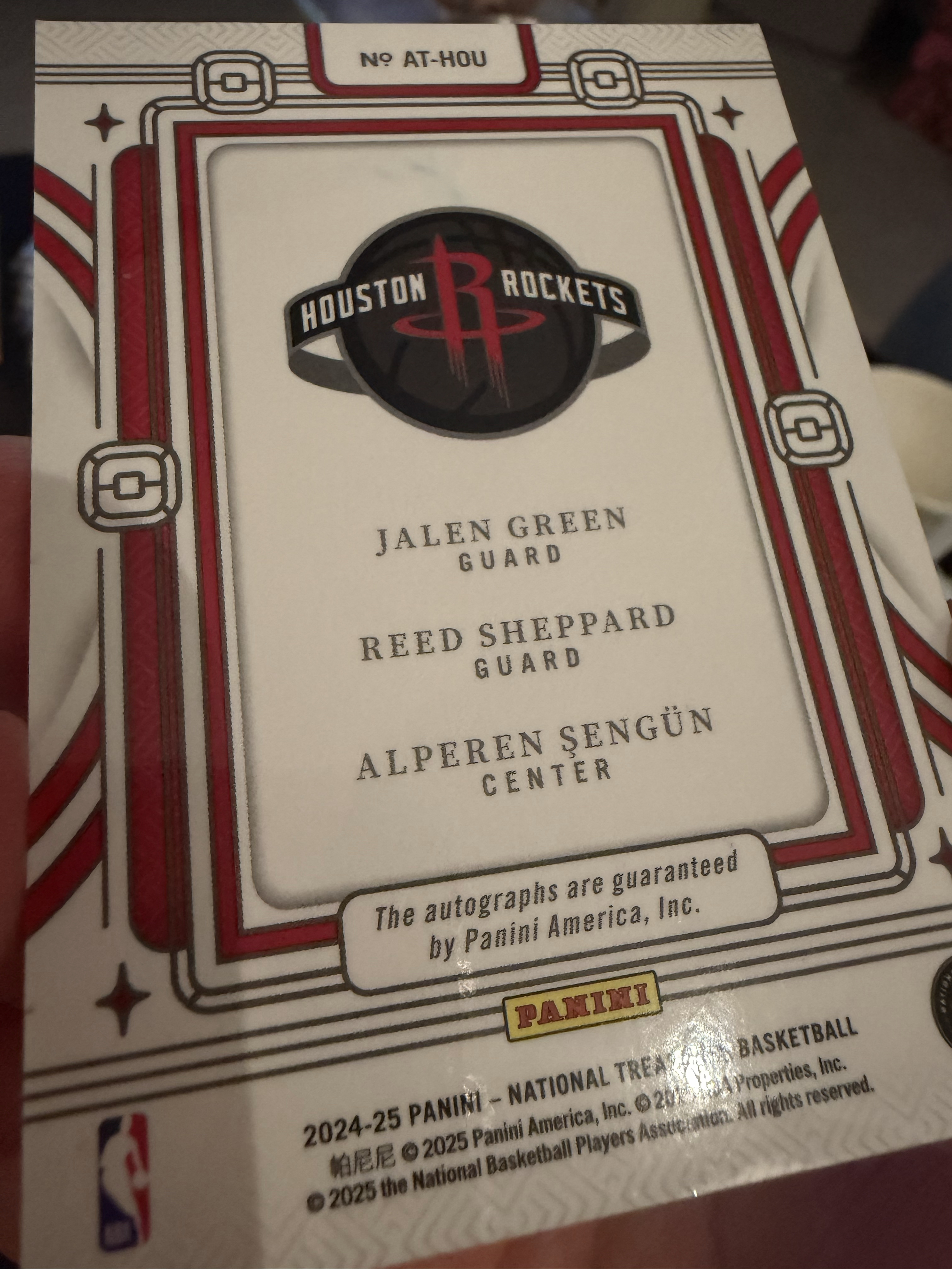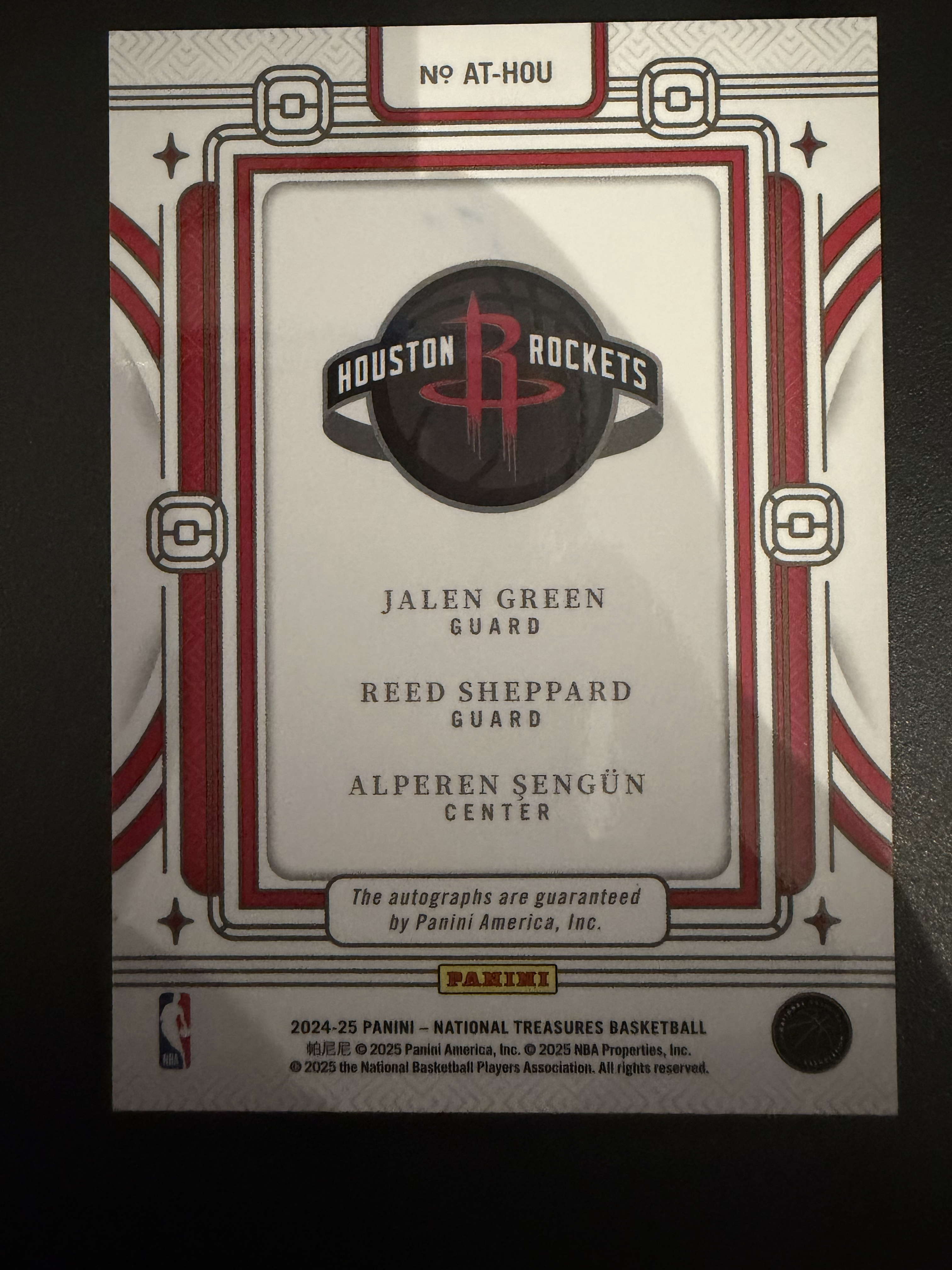 2024-25 Panini National Treasures Reed Sheppard RC 10编低遍火箭三人新秀谢波德核心申京金平行三签特卡,卡品如图,收藏佳品,拍下后1-3天发货