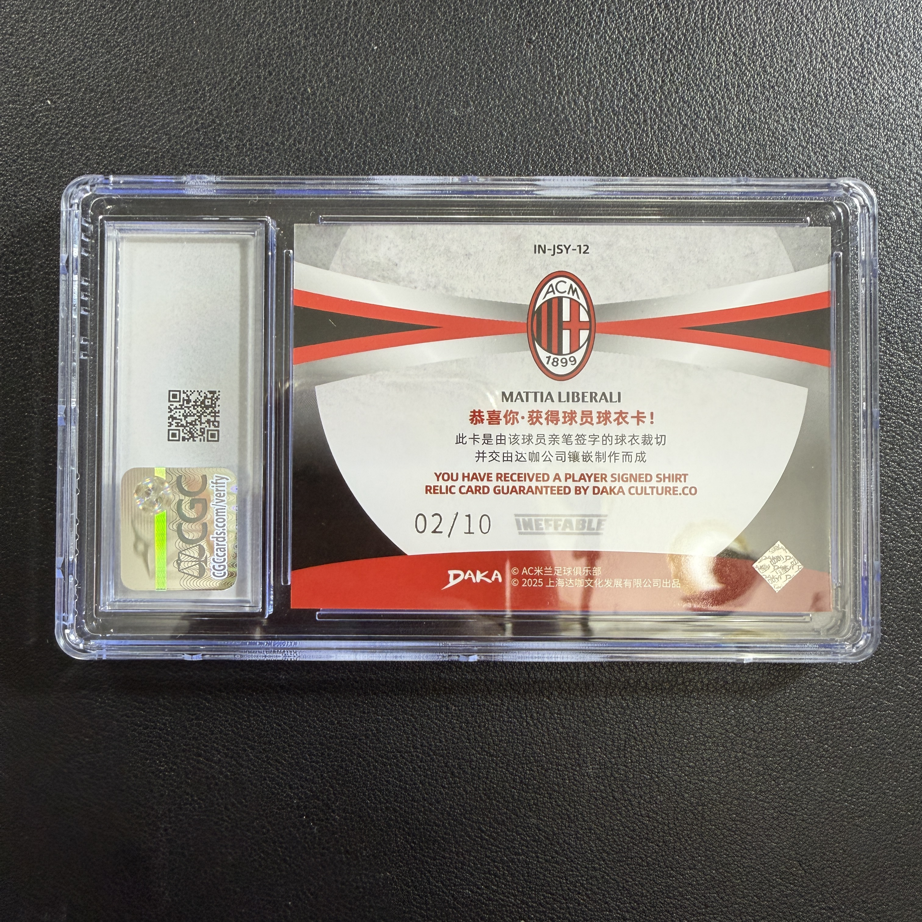 2024-25DAKA AC Milan One&Two队盒 Mattia Liberali RC 利贝拉利 2/10编 金平行 球衣卡 小窗物料 AC米兰 RC新秀 CGC10分 白鹿