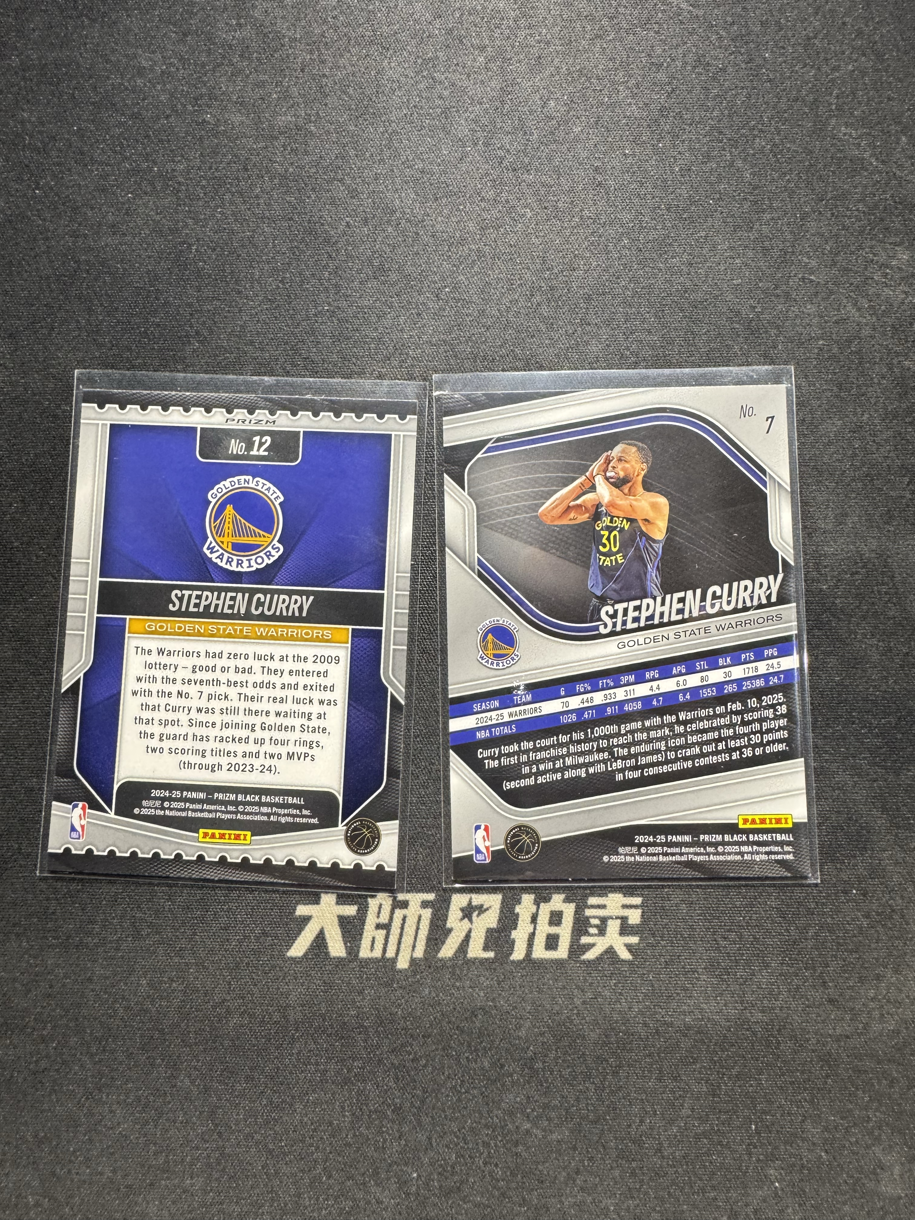 【大师兄拍卖】2024-25 Panini prizm black STEPHEN CURRY 勇士 库里 pz 乐透特卡 银折 晚安 base 2张 通行品 -发哥-