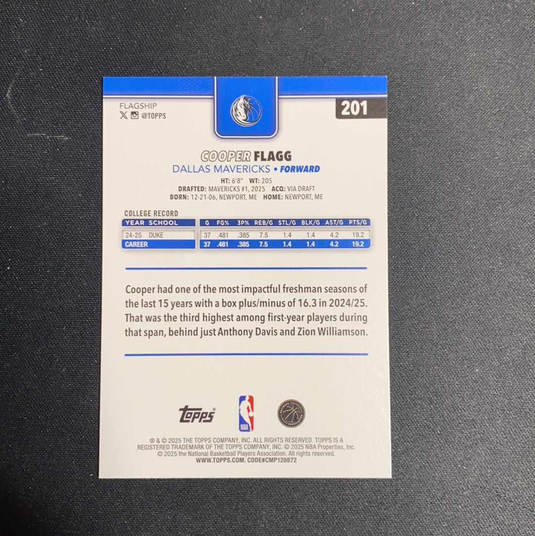 2025-26 Topps Flagship Cooper Flagg RC 独行侠 新秀 弗拉格 卡品如图 空白#1