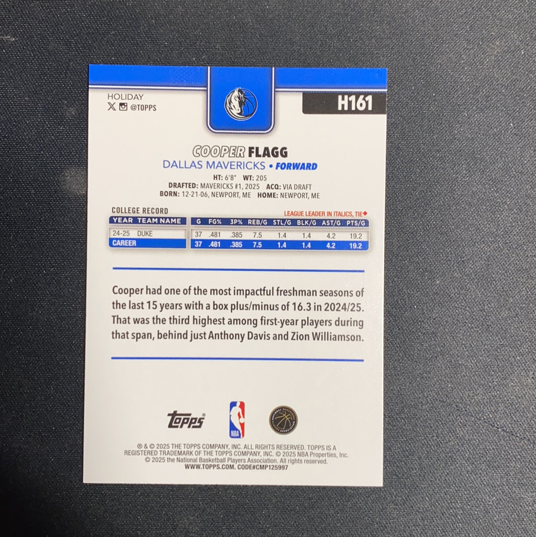 2025-26 Topps Flagship Cooper Flagg RC 假日 独行侠 新秀 弗拉格 卡品如图 空白#1