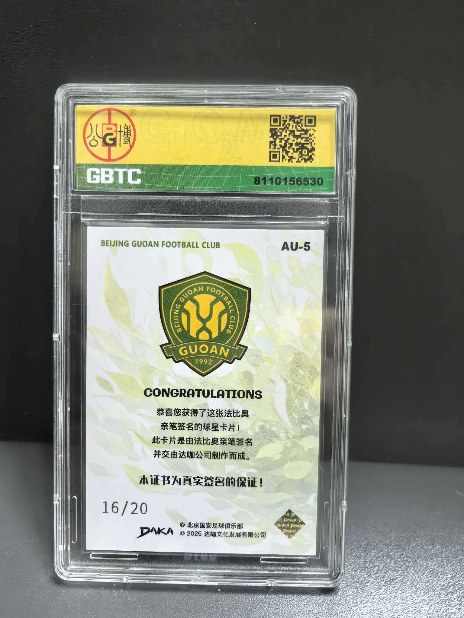 2025 Daka Beijing Guoan 达咖 北京国安队盒 Fabio Abreu 法比奥 阿布雷乌 签字 卡签 蓝平行 20编 GBTC公博评级9.5分 签字10分 专收必备张稀哲张玉宁队友