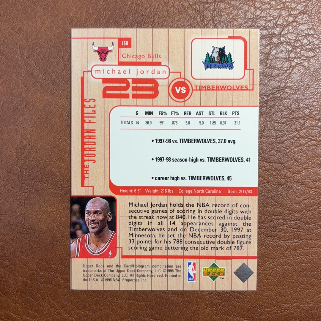 1998 Upper Deck NBA Michael Jordan 【耳朵拍卖】公牛 乔丹 传奇 飞人 神 UD NBA 大比例 乔丹专属对决特卡 vs森林狼队 收藏必入 瑕疵见图 小禹
