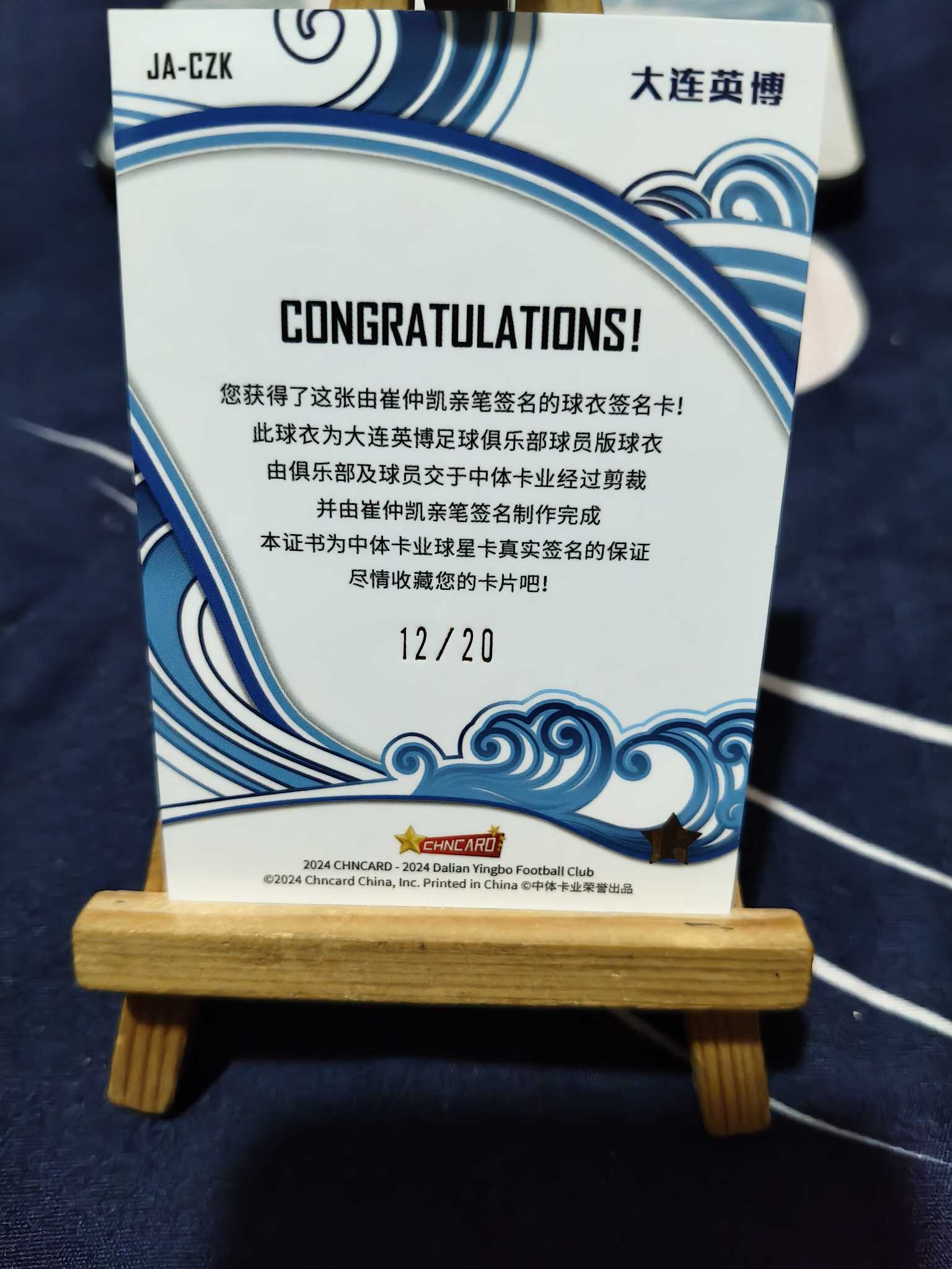 2024 中体卡业 Lineage 崔仲凯 中体卡业 中超 崔仲凯 20编 卡签 签字 球衣物料切割 大连英博
