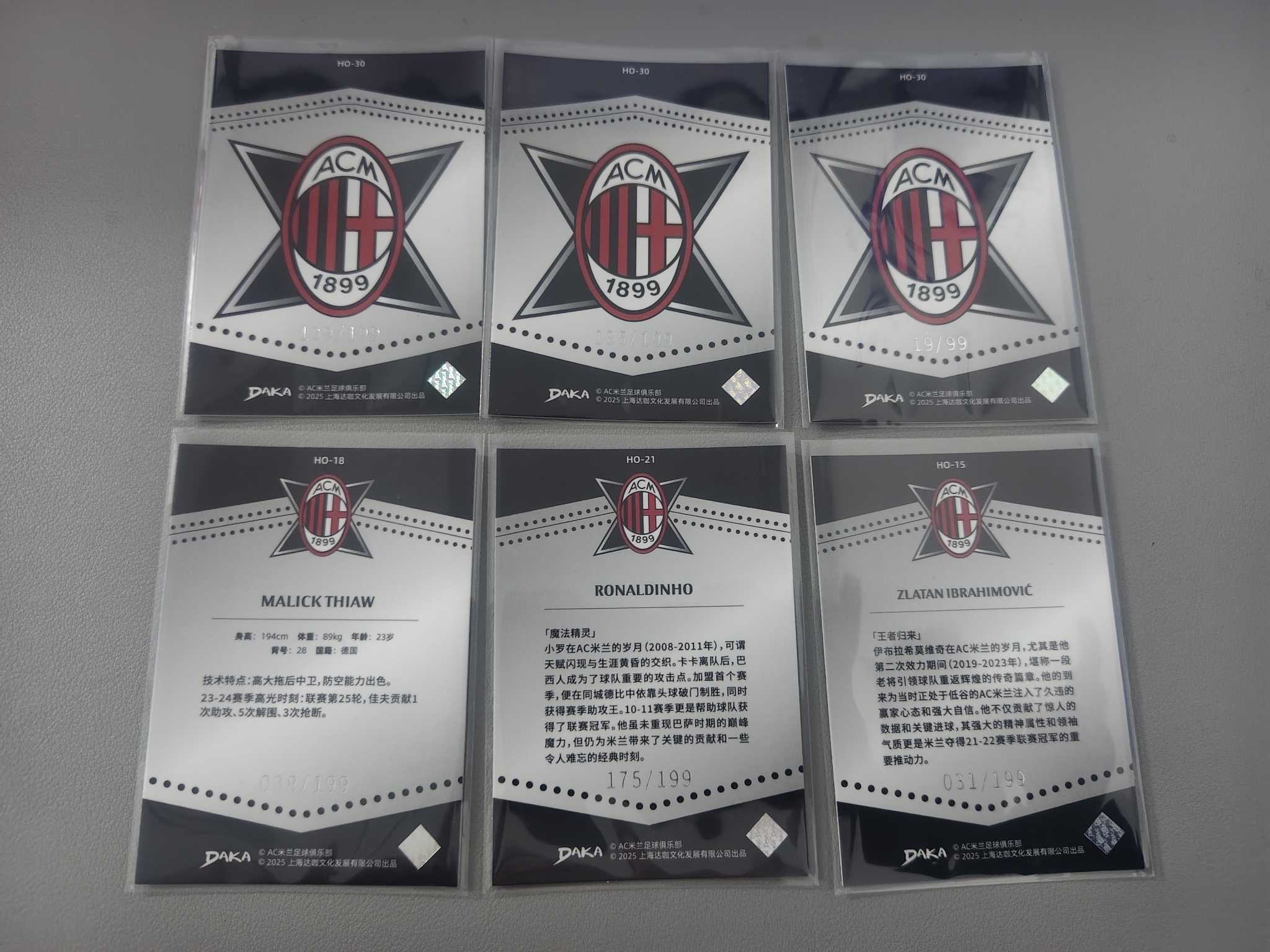 【佩妮拍卖】2025 DAKA 达咖 AC米兰足球俱乐部 ronaldinho 罗纳尔迪尼奥 伊布 佳夫 AC米兰队徽 99编 199编lot106 拍前请阅读描述 许哥1122