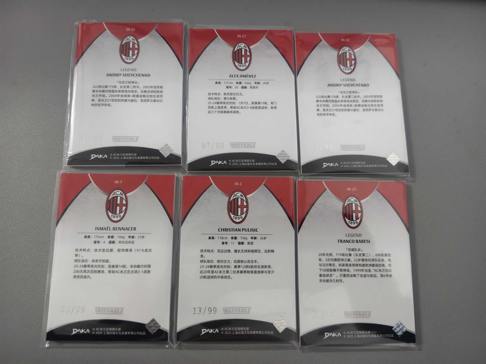 【佩妮拍卖】2025 DAKA 达咖 AC米兰足球俱乐部 pulisic 普利西奇 本纳塞尔 巴雷西 希门尼斯 舍甫琴科 厚卡 99编lot114 拍前请阅读描述 许哥1122