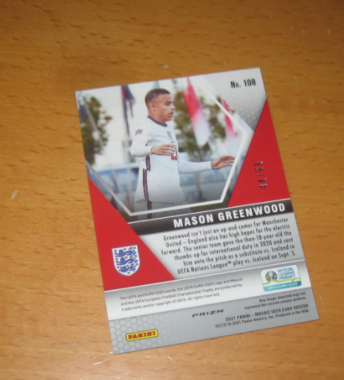 2021 Panini Mosaic Mason Greenwood 【hurrylin拍卖】 帕尼尼 马赛克 欧洲杯 球星卡 折射 限量 99编 英格兰 格林伍德 极微小瑕疵品相如图