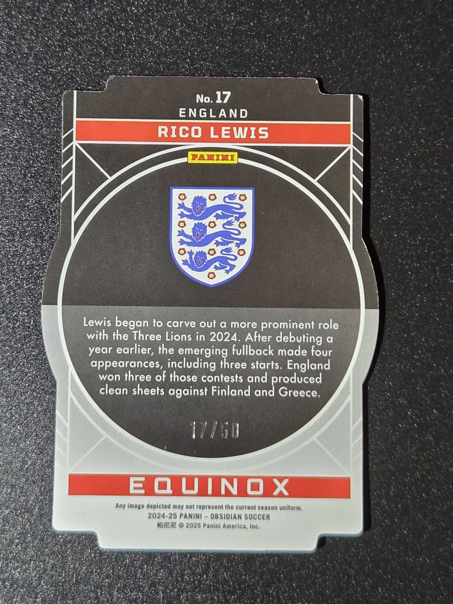 【卡汇拍卖】 GSW-B50 2024-25 Panini Obsidian Rico Lewis 黑曜石 英格兰 里科刘易斯 异形特卡 50编 卡品如图