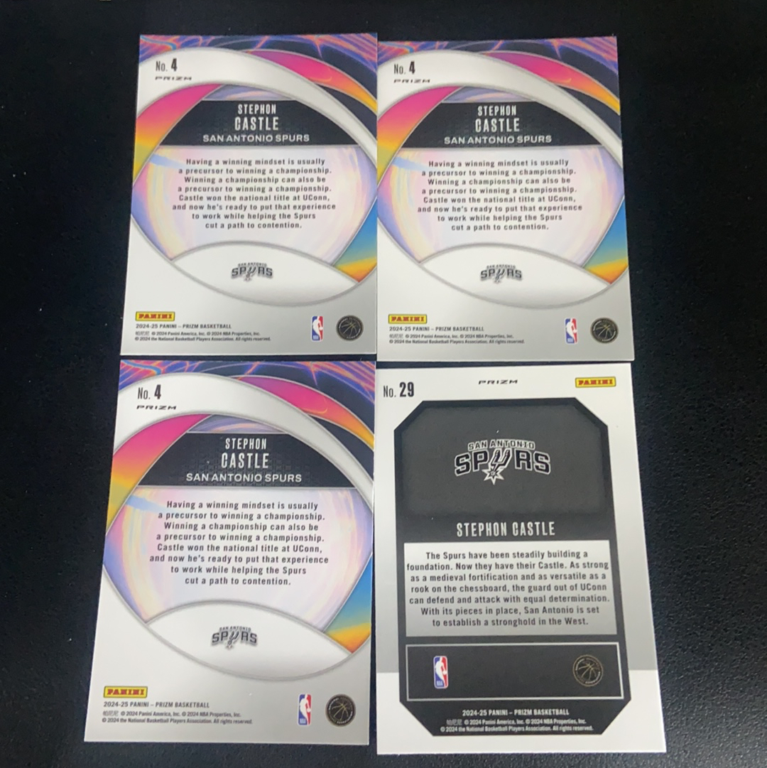 2024-25 Panini Prizm Stephon Castle RC 【9527拍卖】pz 马刺 新秀 斯蒂芬 卡斯尔 收藏必备 能量特卡 特卡 银折 base 4张打包