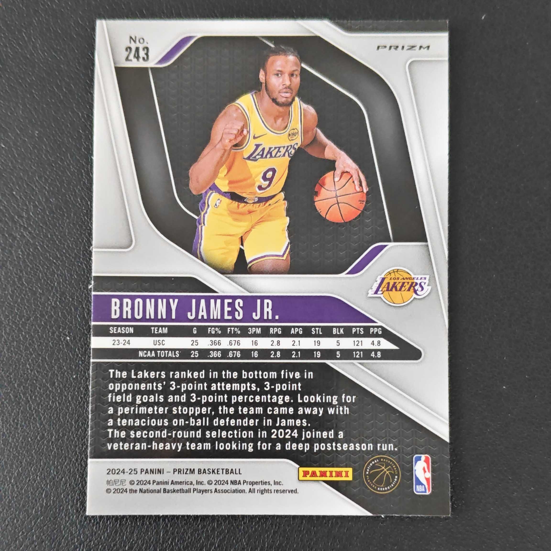 2024-25 Panini Prizm Bronny James Jr 洛杉矶湖人 布朗尼 詹姆斯 RC新秀 詹姆斯长子 太子爷 银折 折射 潜力新秀 未来可期