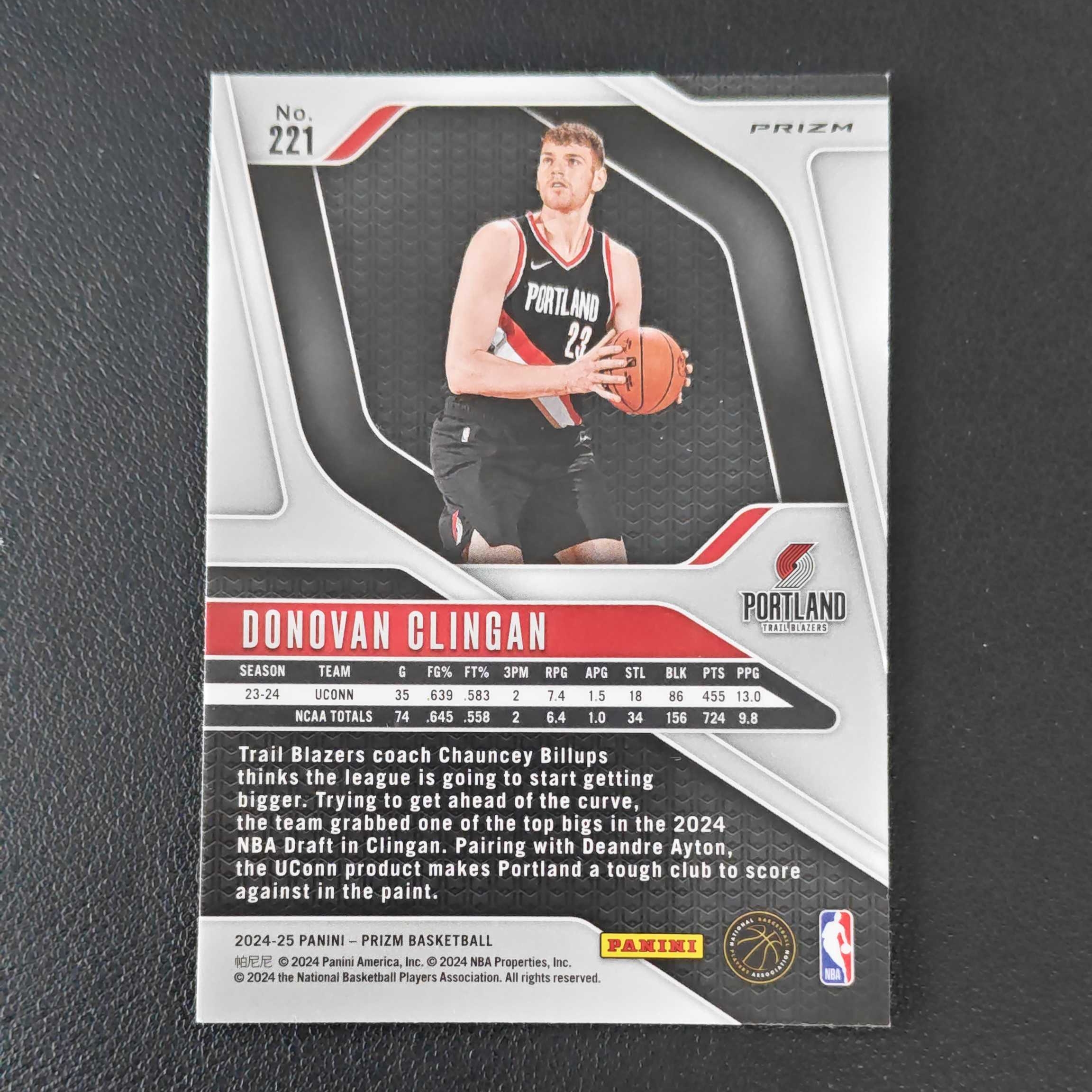 2024-25 Panini Prizm Donovan Clingan RC prizm 多诺万 克林根 RC 新秀 银折 开拓者