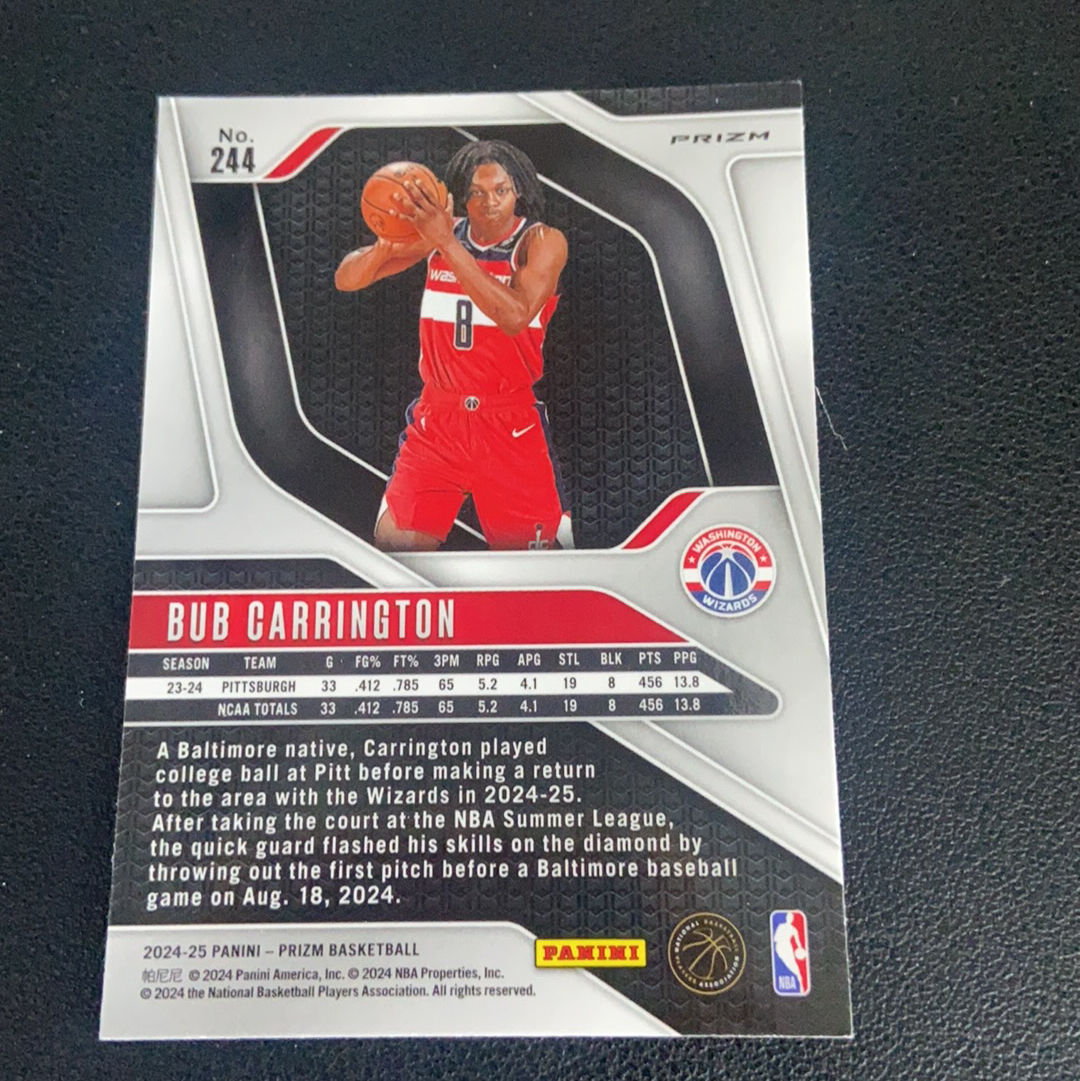 2024-25 Panini Prizm Bub Carrington RC 【9527拍卖】卡林顿 华盛顿奇才 新秀 正银折 卡品如图 实卡超美 收藏必备